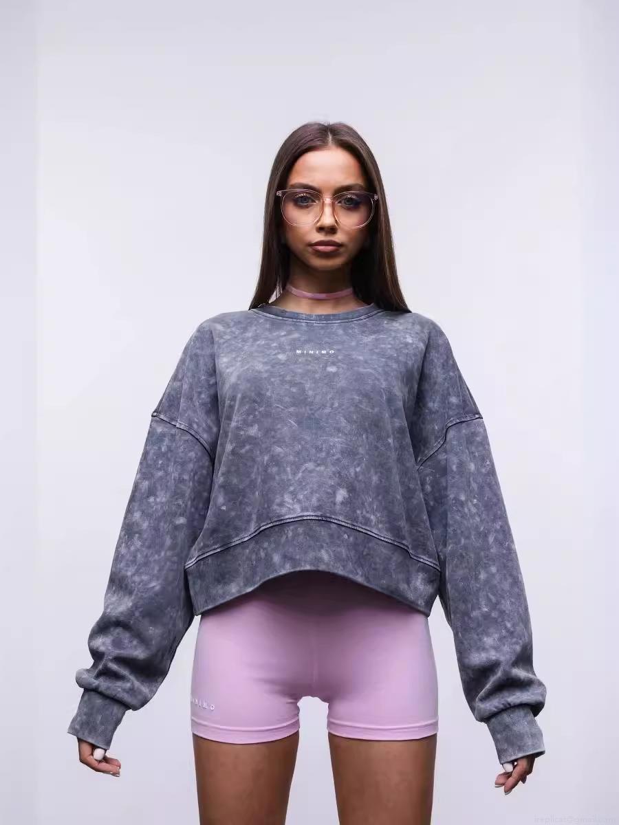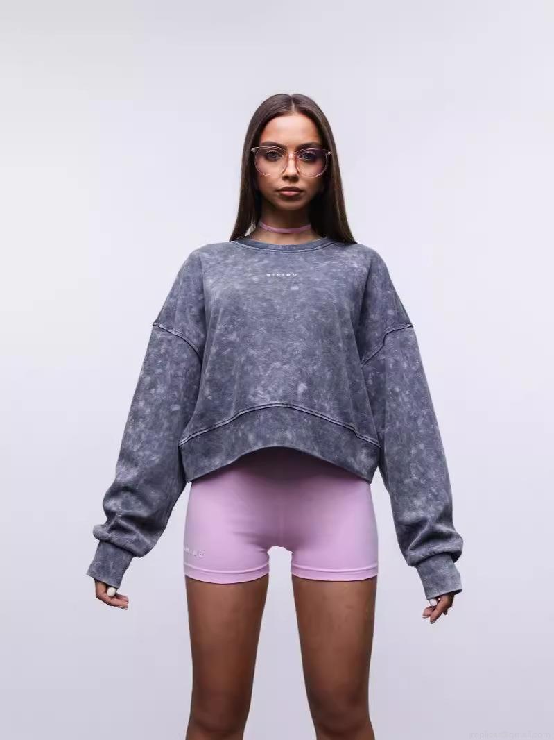 • Women's American High Street Washed Distressed Crewneck Sweatshirt Cotton Spandex Long Sleeve Cropped Pullover Loose Fit Retro Acid Wash Autumn Winter Top