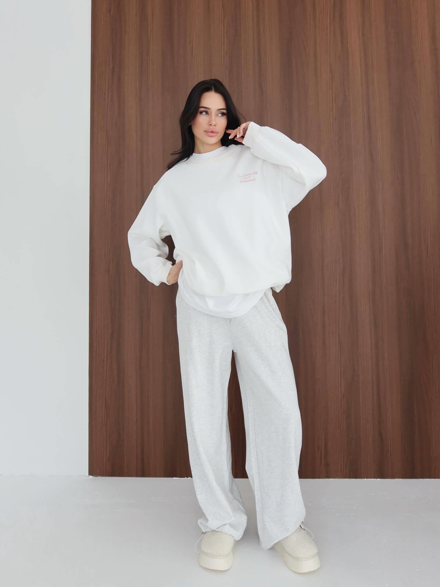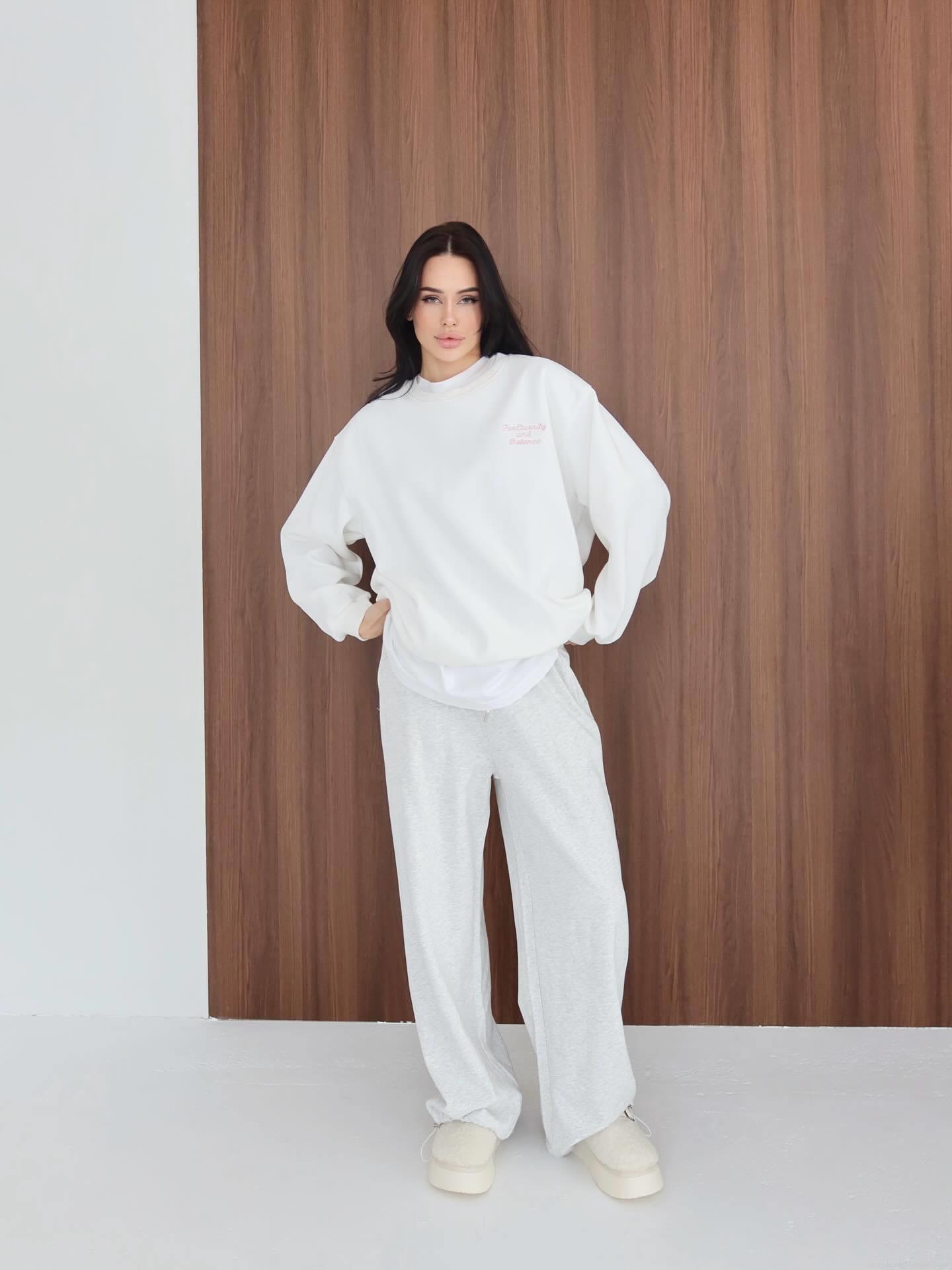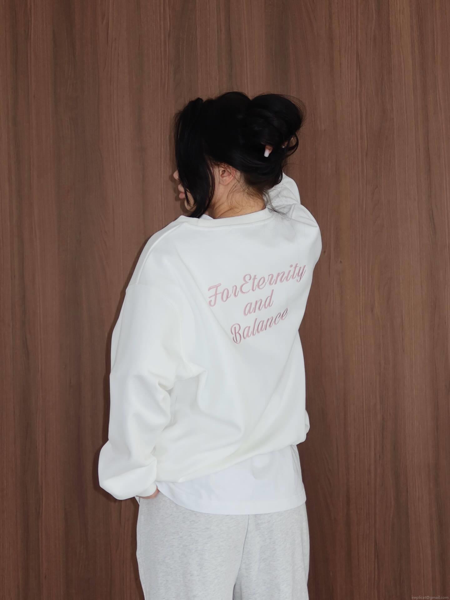 Women's American Retro White Round Neck Sweatshirt 100% Cotton Loose Oversized Letter Print Long Sleeve Pullover Top For Streetwear Autumn Spring