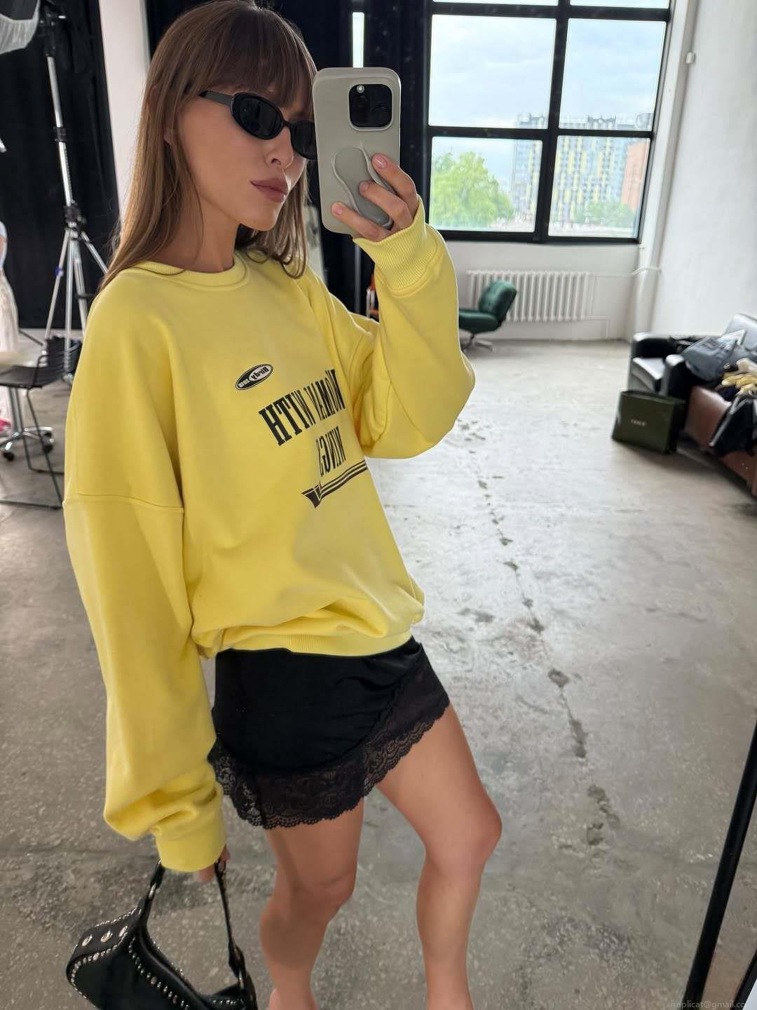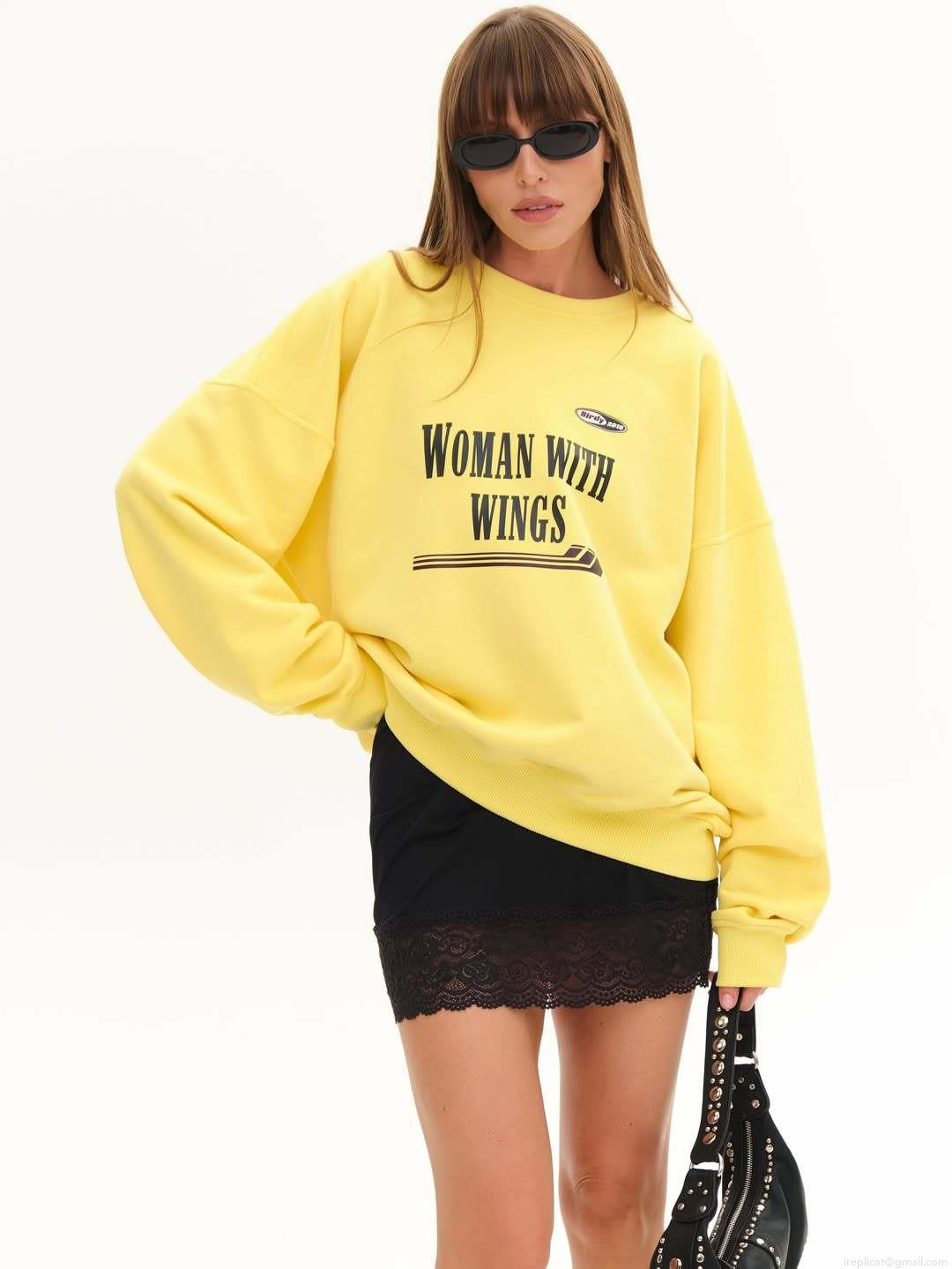 Women's American Vintage Letter Print Pullover Sweatshirt 100% Cotton Crewneck Loose Fit Long Sleeve Autumn Winter Streetwear Top