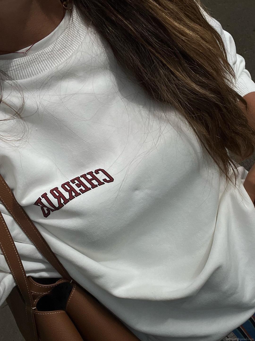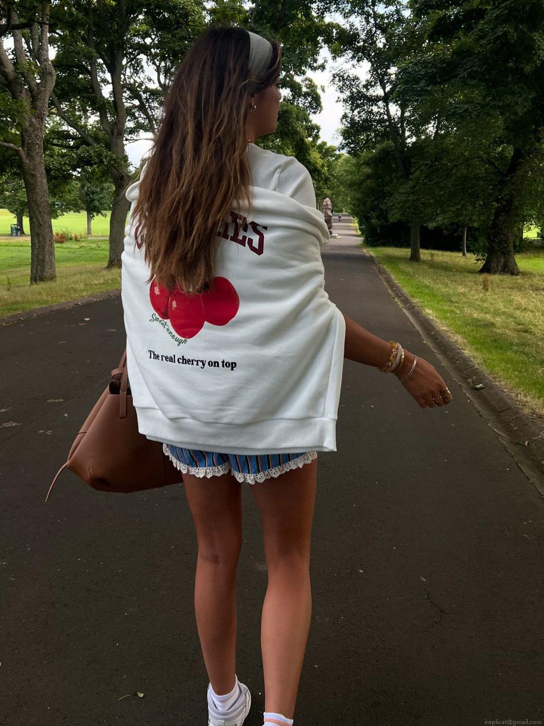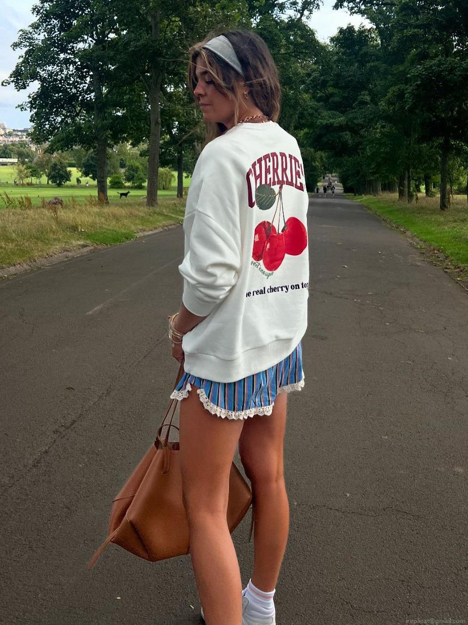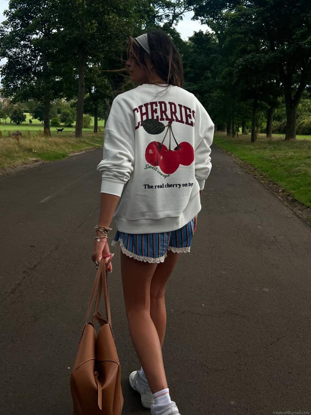 • Women's Casual Cotton Round Neck Long Sleeve Sweatshirt With Cherry Letter Print Fashion Loose Pullover Top Autumn Streetwear Apparel
