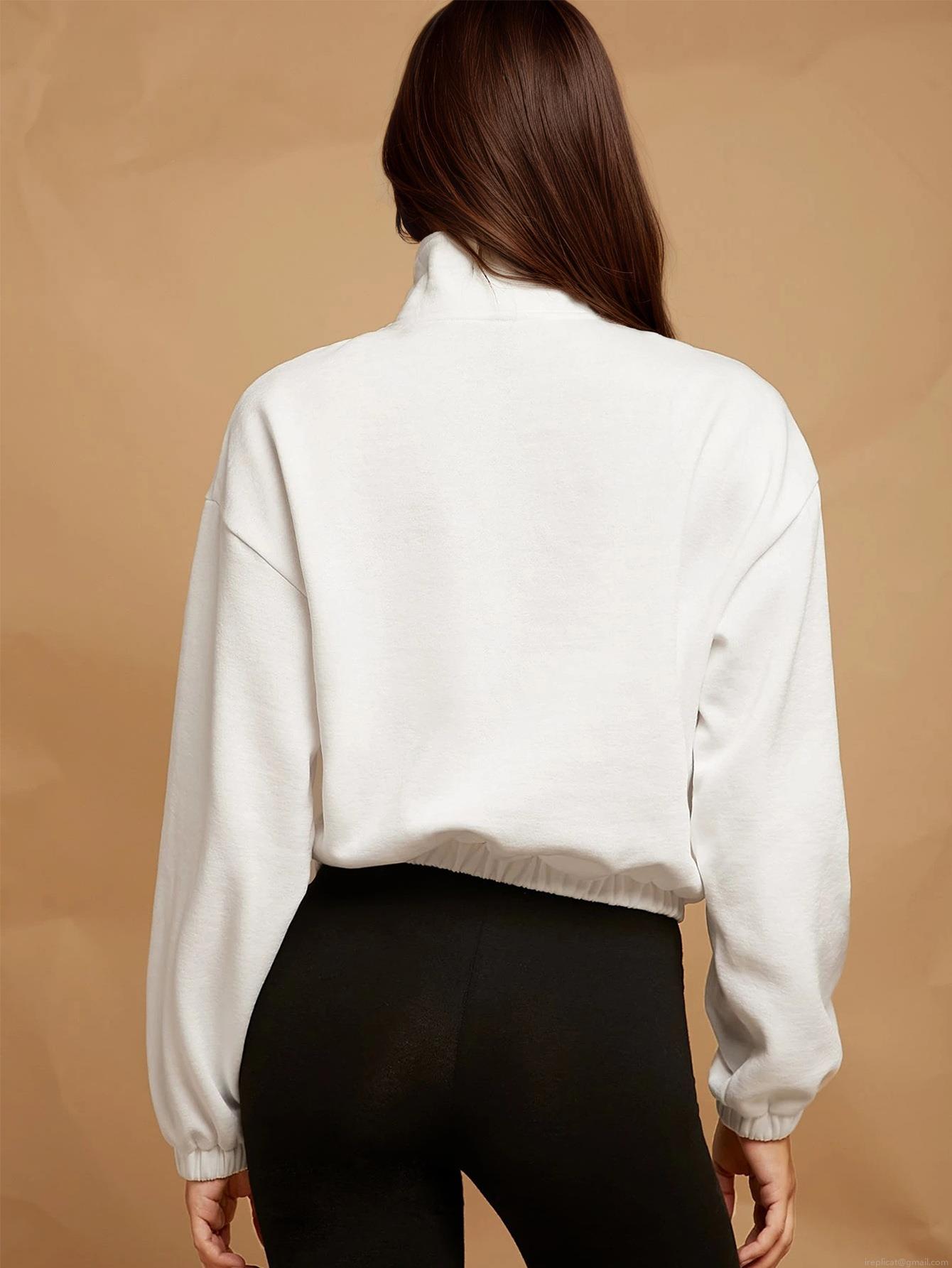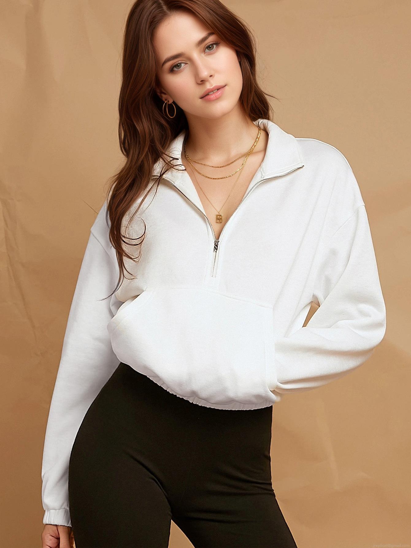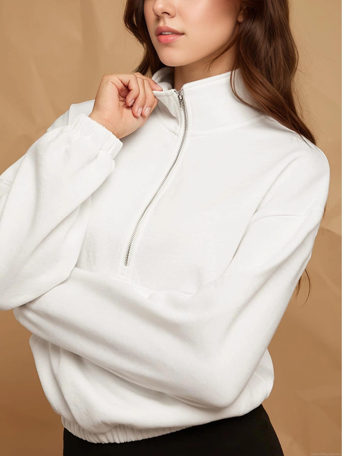 • Women's Casual Half Zip Sweatshirt Oversized Pullover With Kangaroo Pocket Fleece Lined Stand Collar Solid Color Long Sleeve Sweatshirt For Women