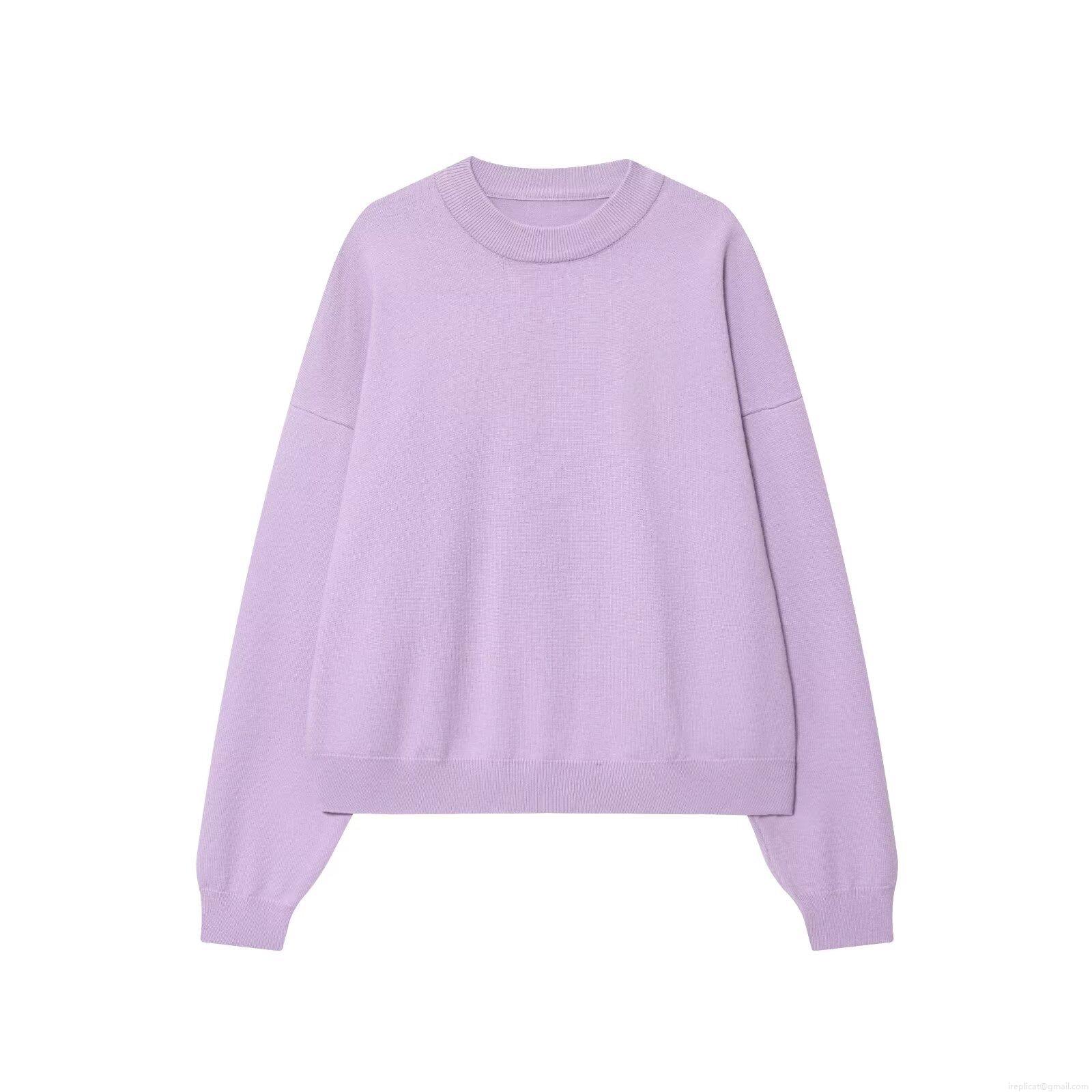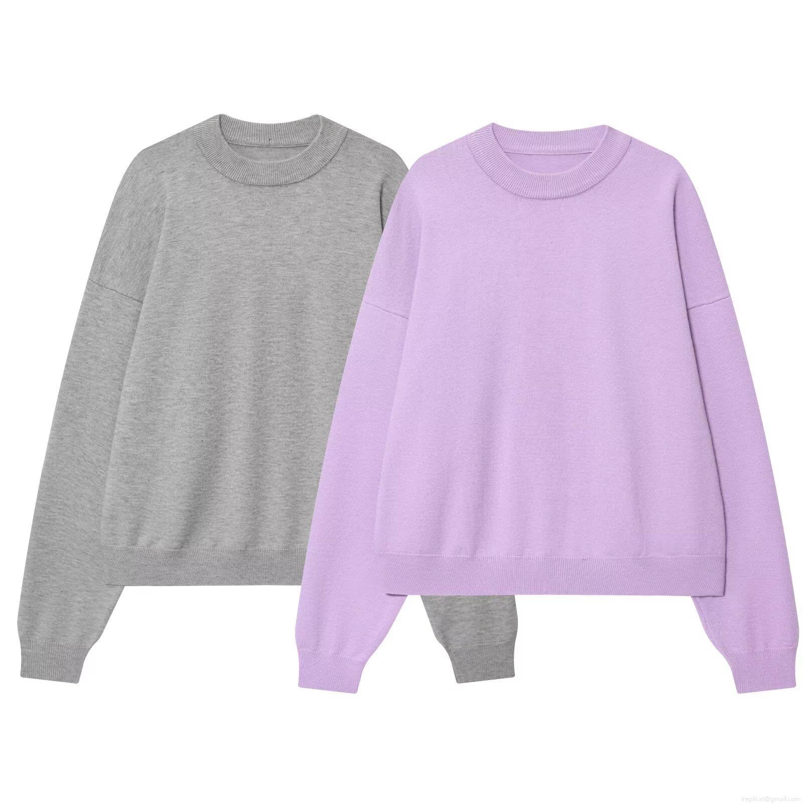 • Women's Casual Round Neck Long Sleeve Knit Sweatshirt Loose Fit Solid Color Drop Shoulder Pullover Top Streetwear Autumn Winter Clothing Lavender Purple Grey