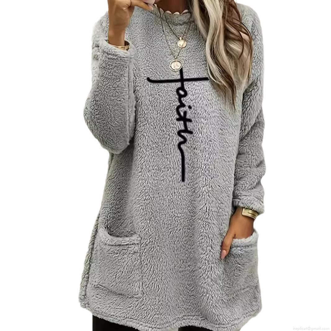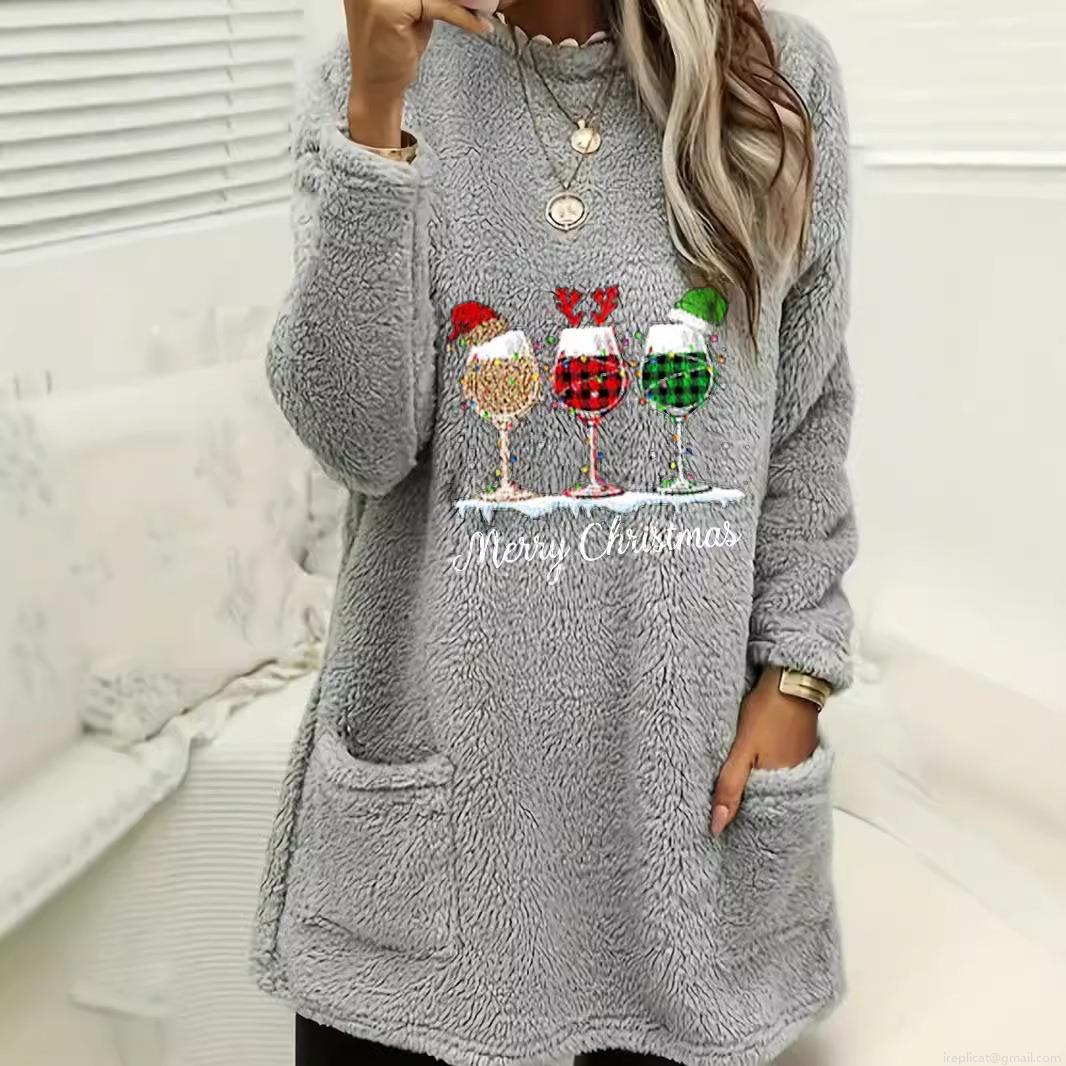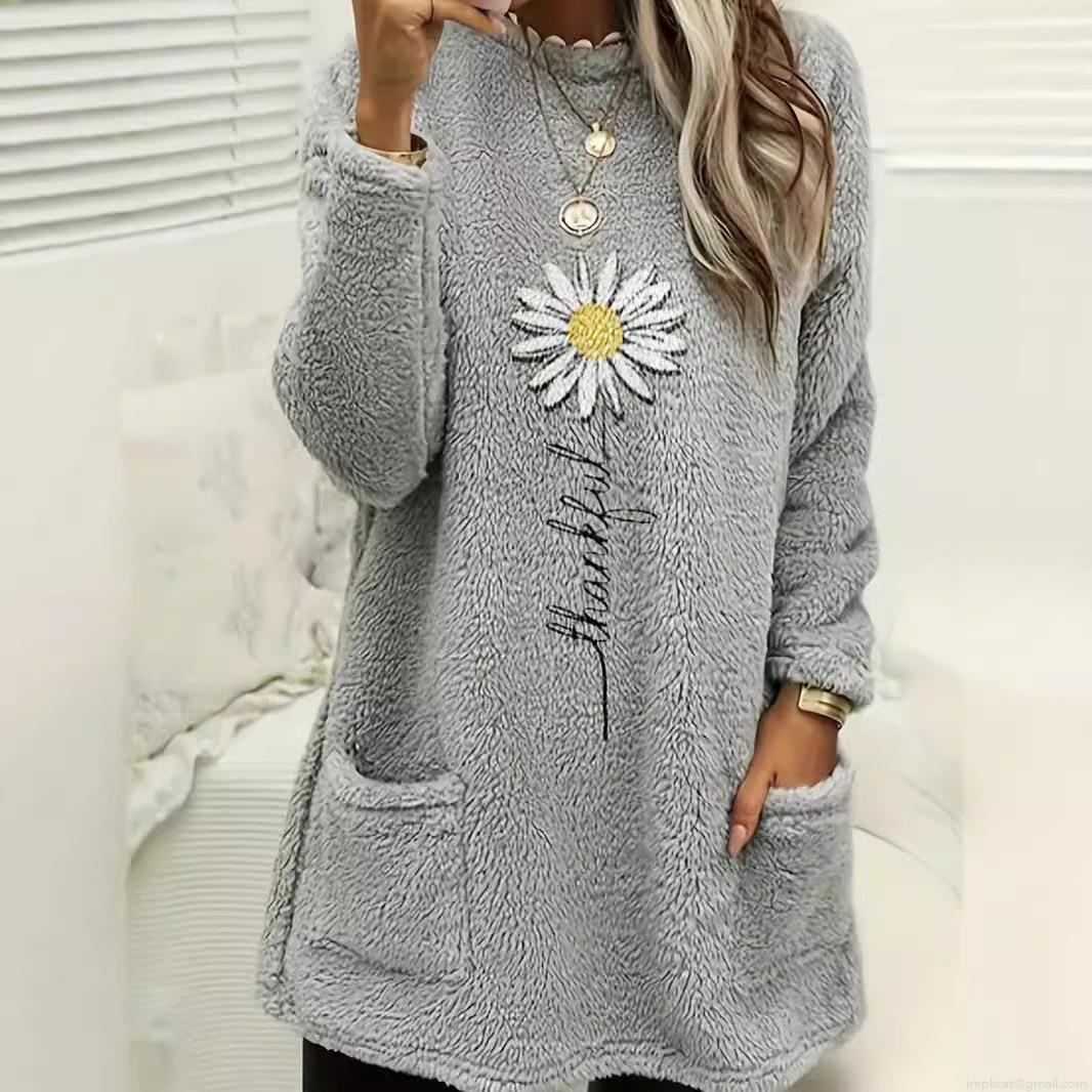 • Women's Casual Sherpa Fleece Sweatshirt Long Sleeve Pullover With Pockets Loose Fit Fuzzy Tunic Top Christmas Halloween Graphic Print Fall Winter Warm