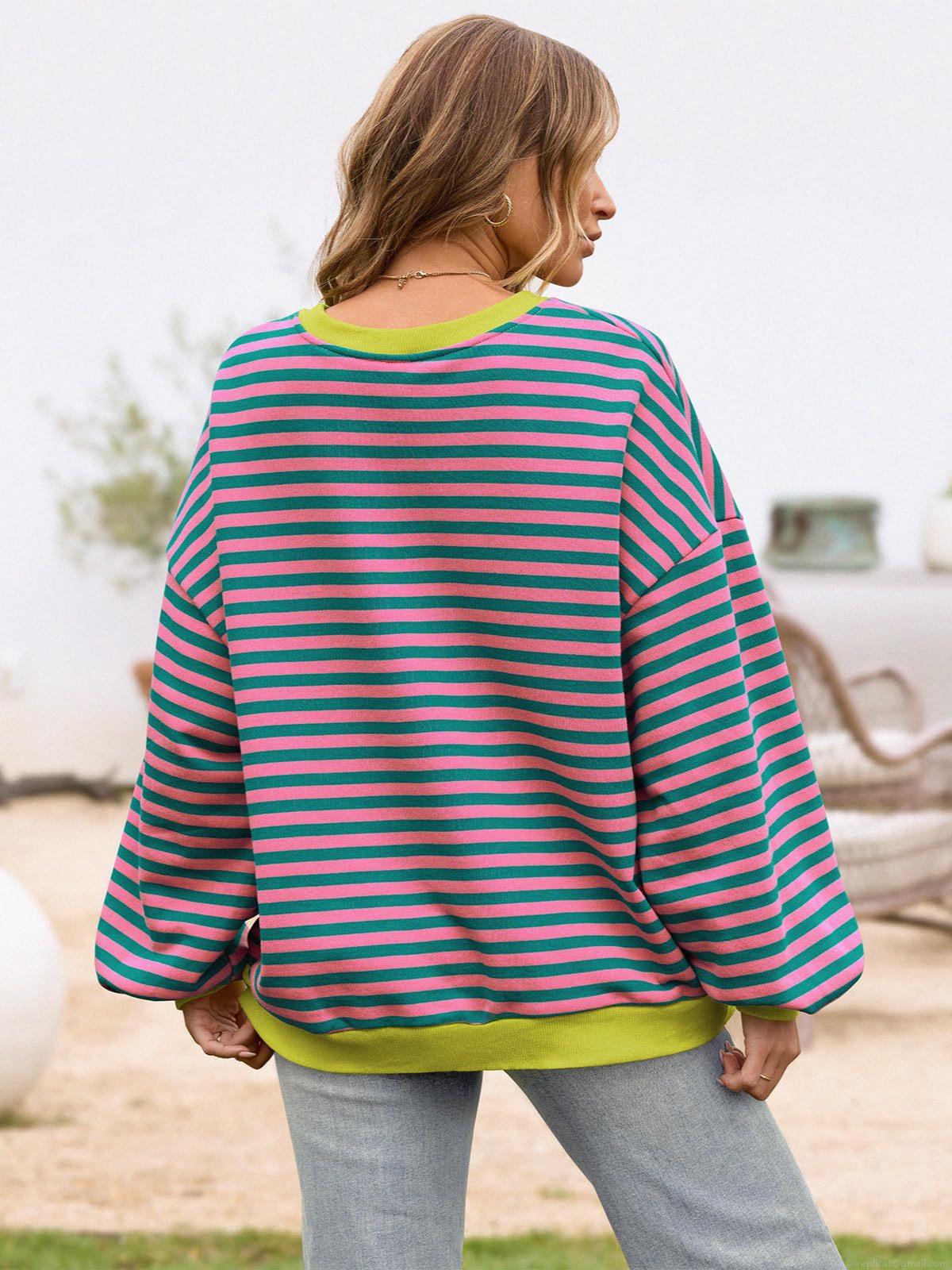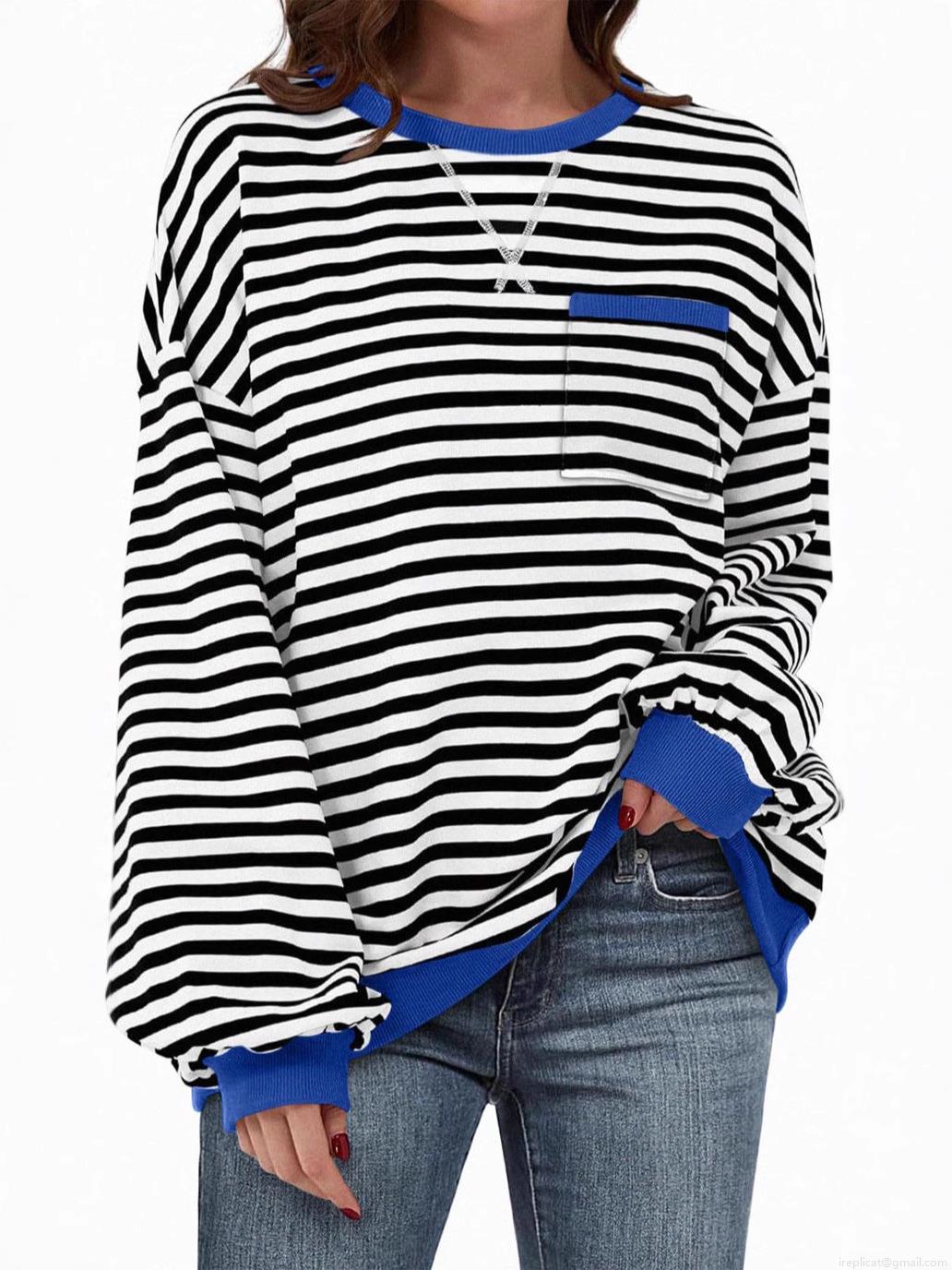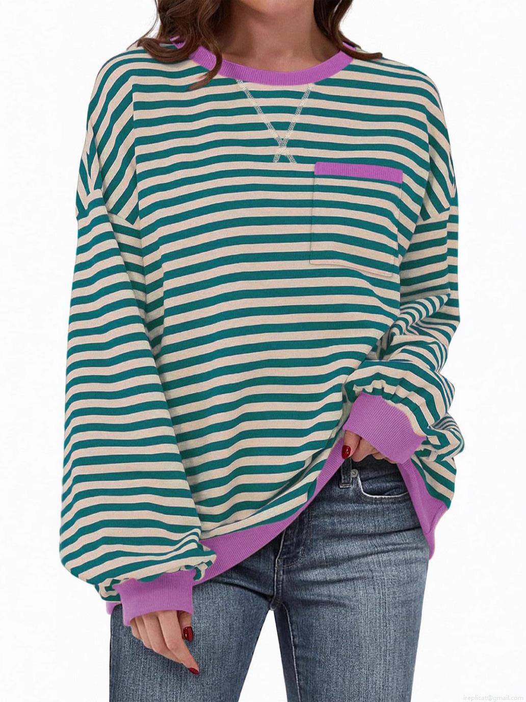 • Women's Casual Striped Crew Neck Sweatshirt Loose Fit Color Block Long Sleeve Pullover Top With Chest Pocket Soft Comfortable Autumn Winter Warm Fashion Hoodies