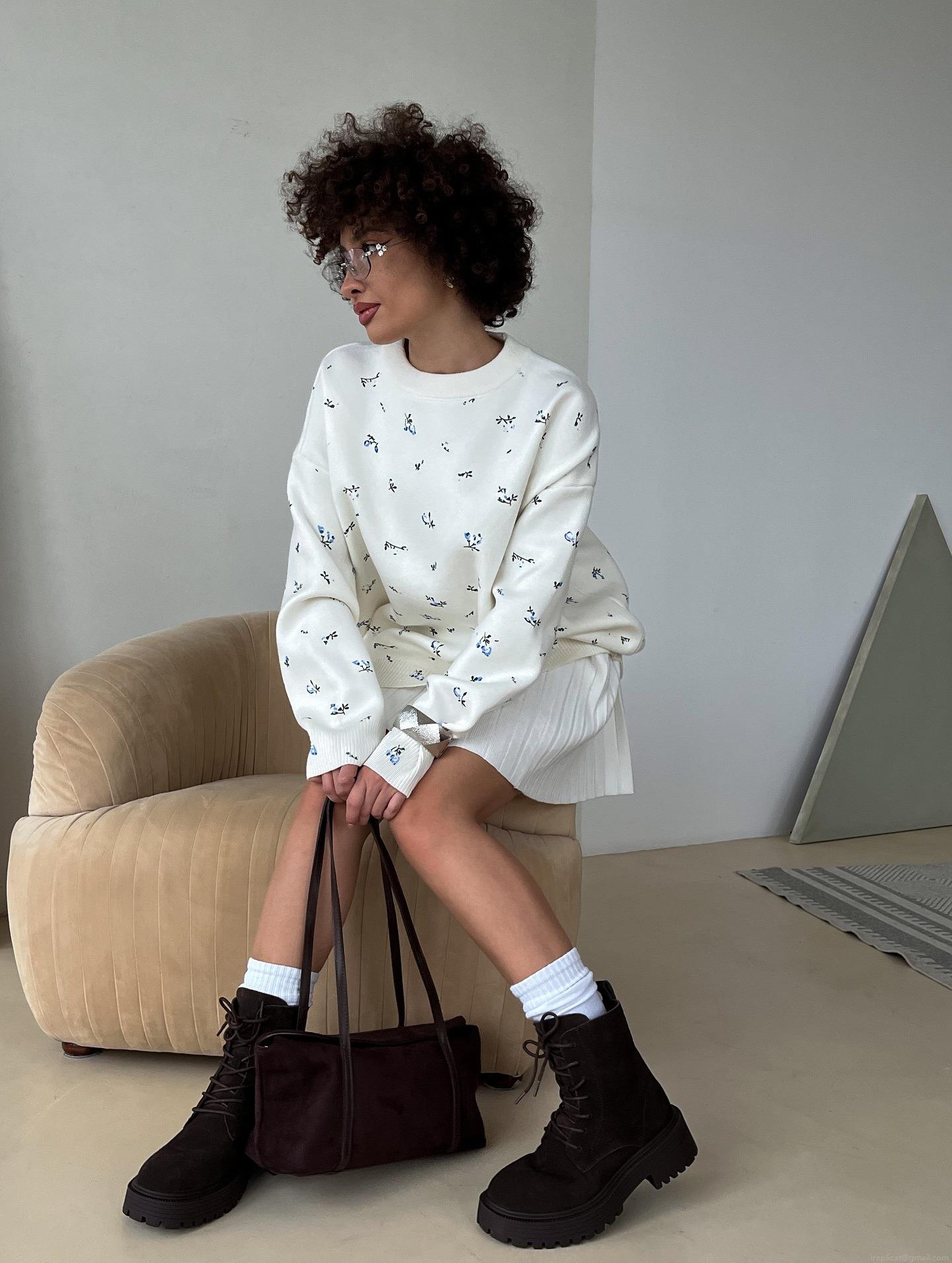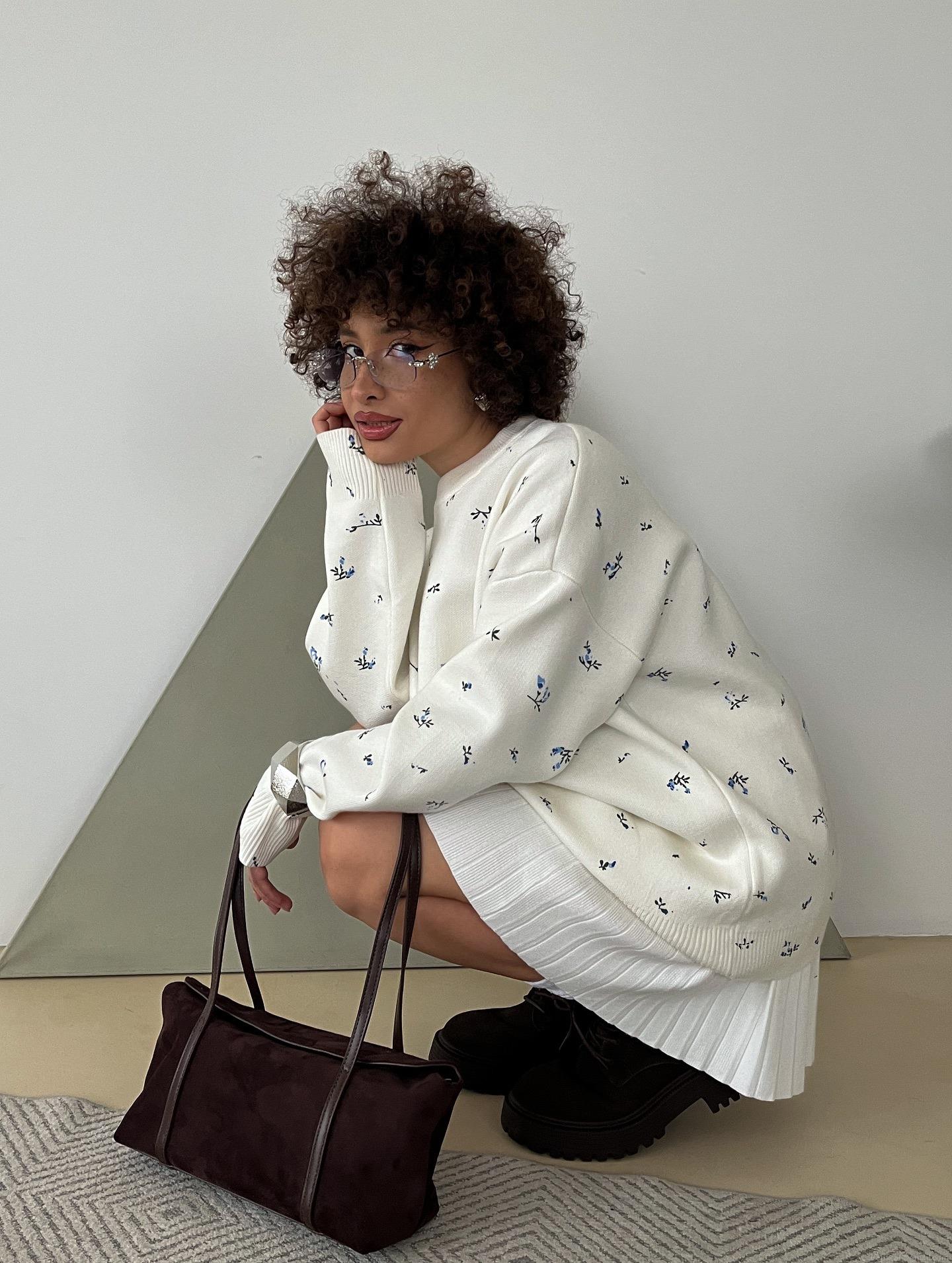 Women's Loose Fit Floral Print Sweatshirt Casual Round Neck Long Sleeve Pullover Top Soft Cotton Fabric Lazy Style Sweatshirt For Autumn Winter