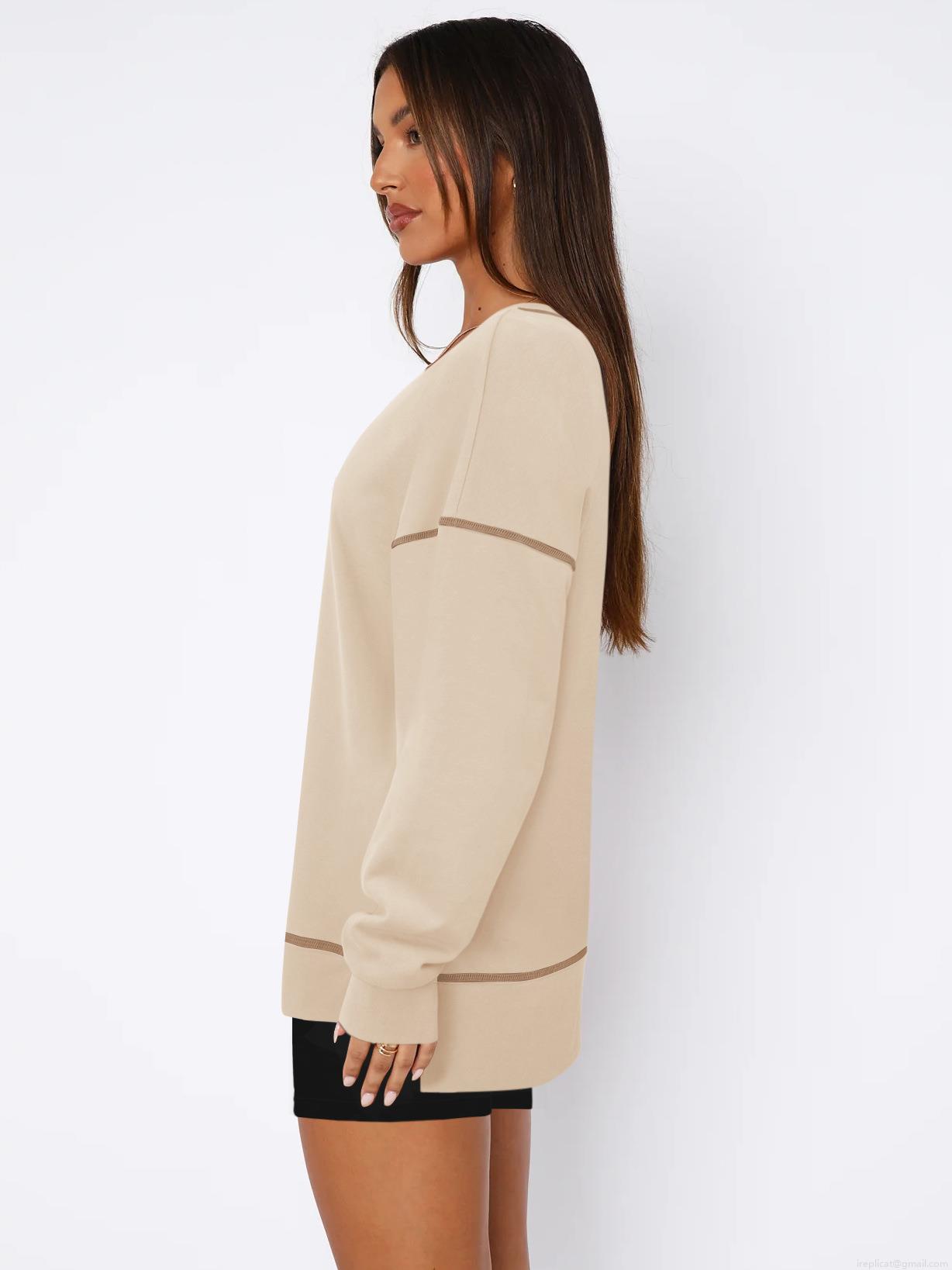 Loose casual sweatshirt! Soft viscose, contrast stitching, round neck, side split. Comfortable, stylish, great fit & high quality!