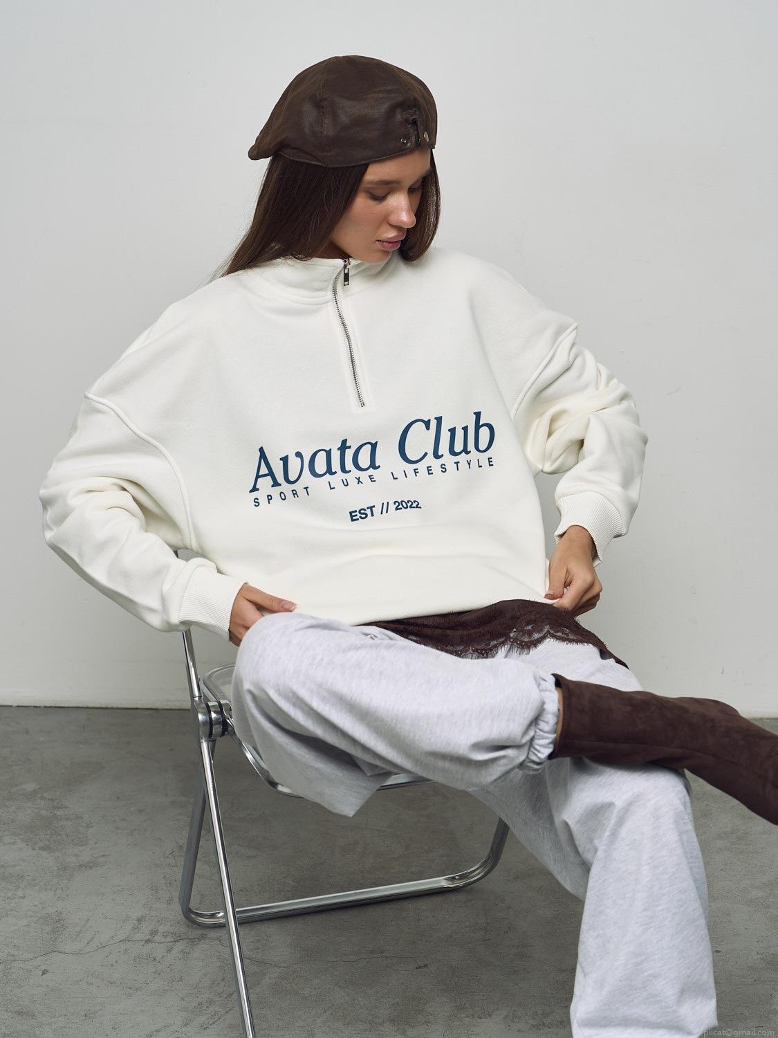 Women's Oversized Boyfriend Style Half Zipper Letter Print Sweatshirt 100% Cotton Long Sleeve Casual Streetwear Pullover Top Jacket