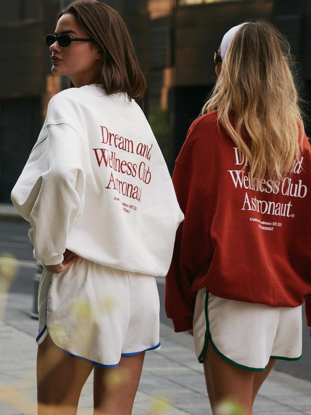 Women's Oversized Cotton Blend Crewneck Sweatshirt Letter Print Long Sleeve Pullover Good Vibes Club Streetwear Autumn Winter Loose Fit Sweatshirt Top