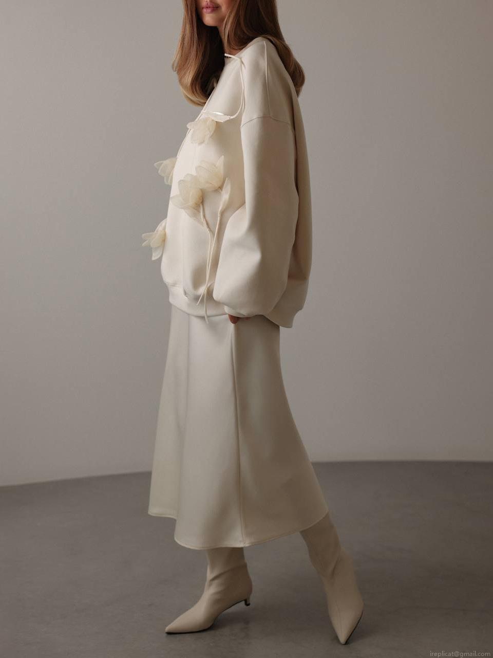 • Women's Oversized Cotton Blend Sweatshirt With 3D Floral Applique Round Neck Long Sleeve Pullover Casual Streetwear Autumn Winter Fashion Top