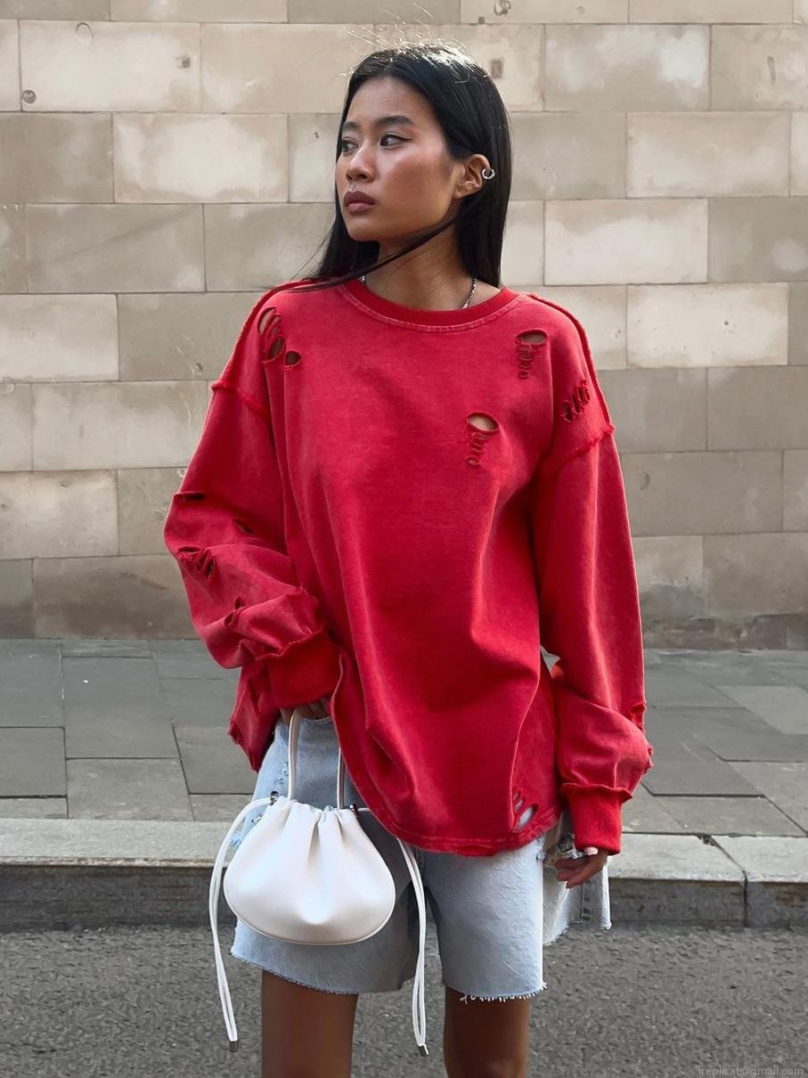 Women's Oversized Distressed Sweatshirt Cotton Pullover Long Sleeve Streetwear Top With Destroyed Details For Autumn Spring Fashion