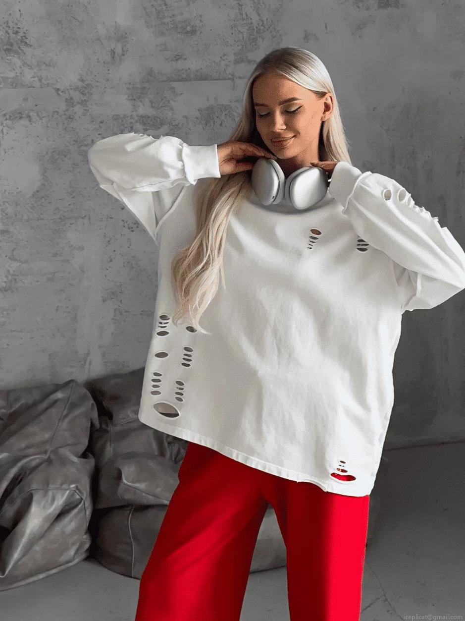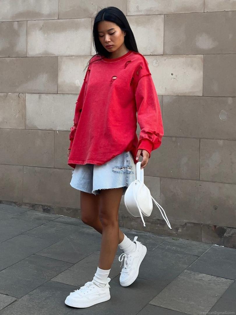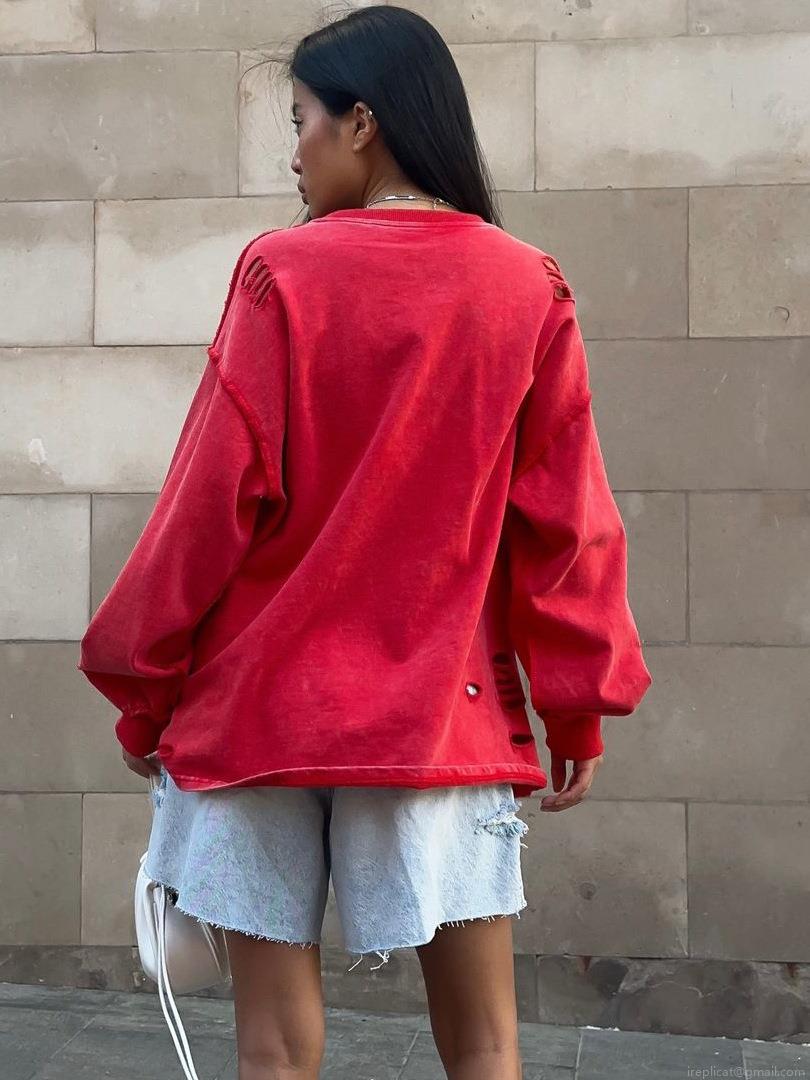 • Women's Oversized Distressed Sweatshirt Cotton Pullover Long Sleeve Streetwear Top With Destroyed Details For Autumn Spring Fashion