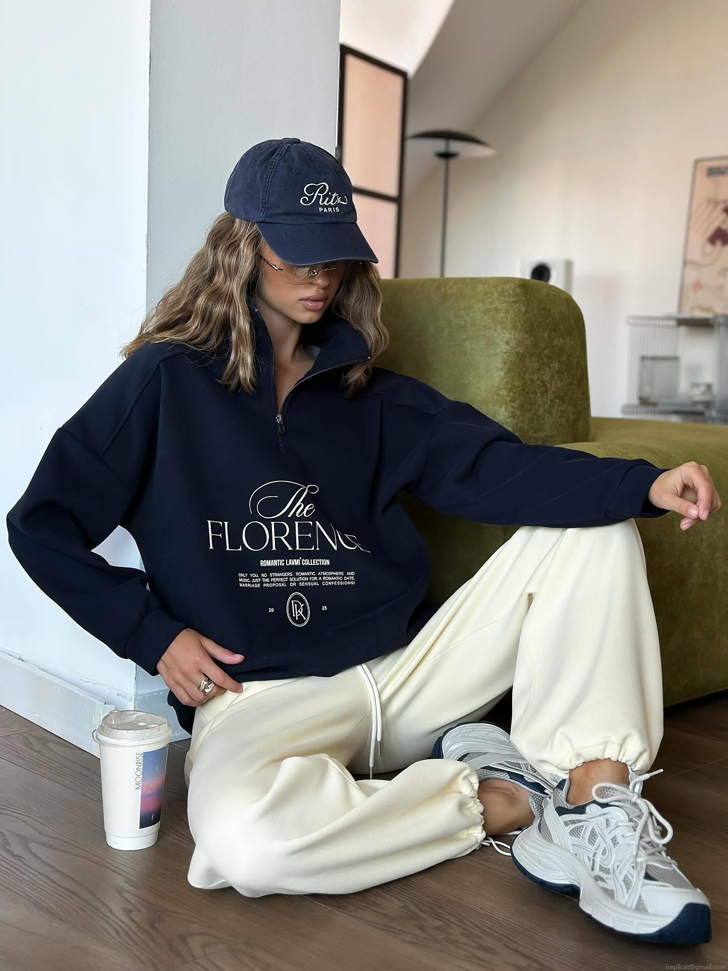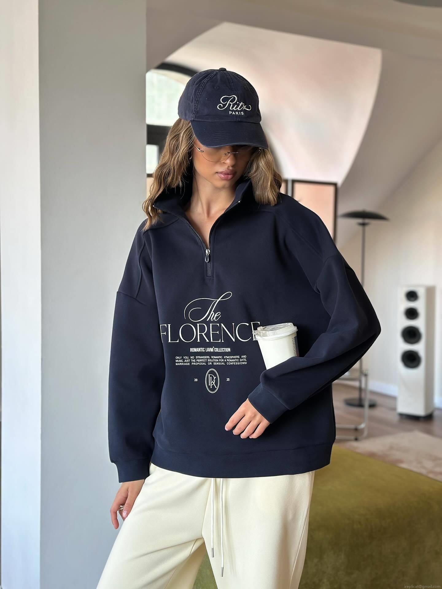 Women's Oversized Half Zip Sweatshirt Cotton Blend Lapel Long Sleeve Pullover With The FLORENCE Letter Print Streetwear Fall Winter Casual Loose Top