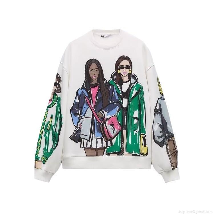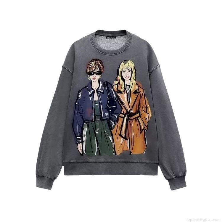 Fleece, Portrait Print, Dropped Shoulders, Fashion Character Illustrations