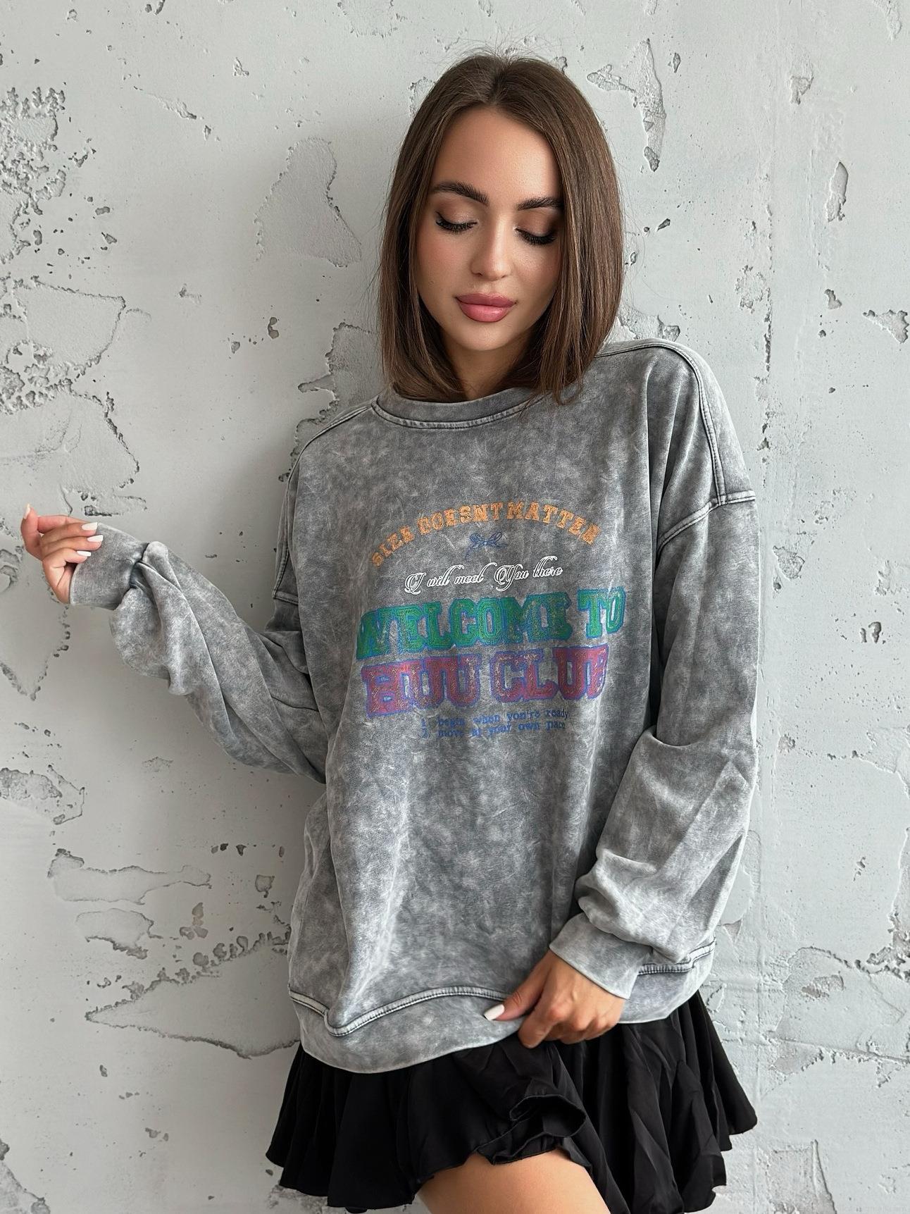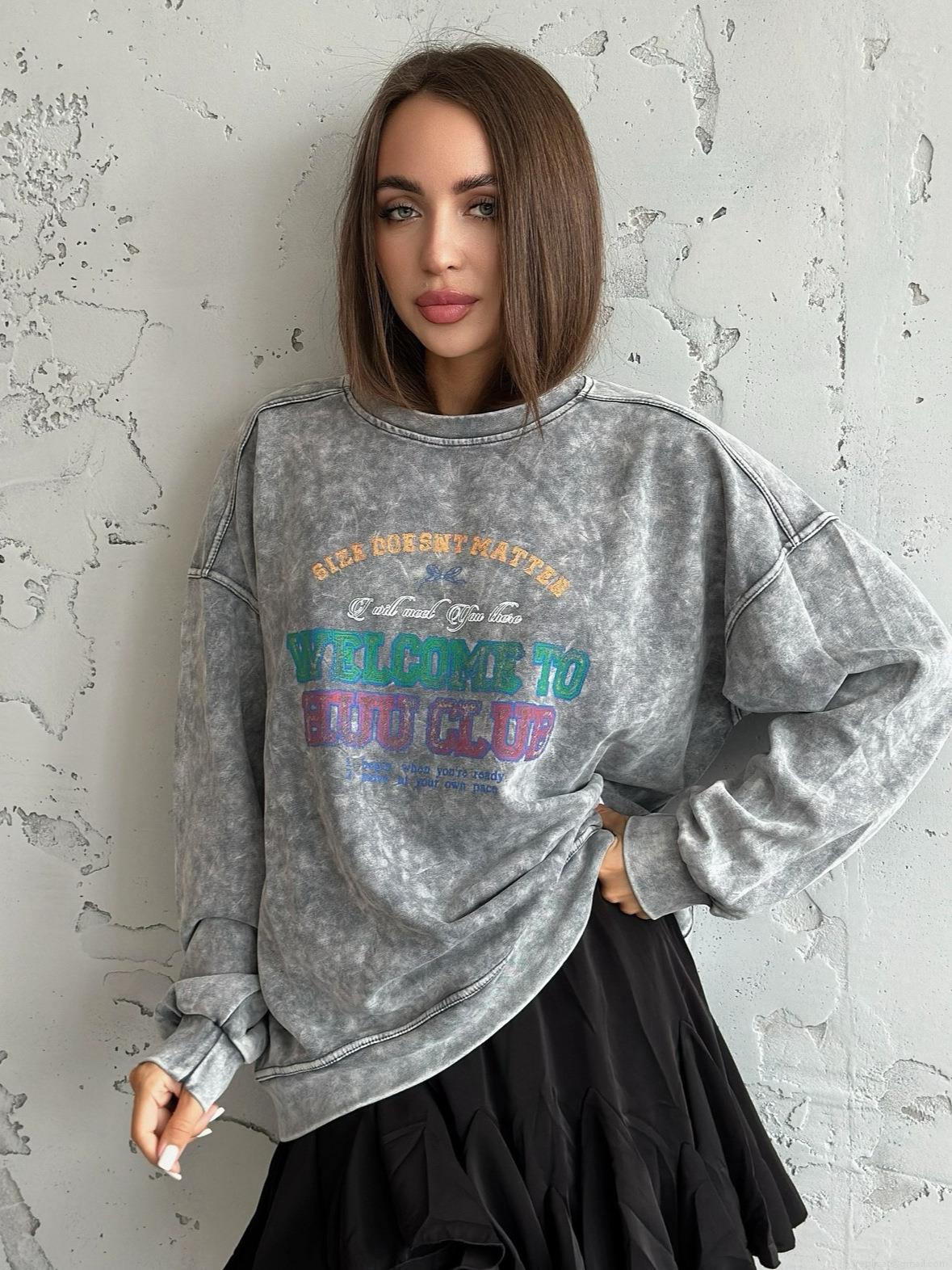 Women's Oversized Sweatshirt Vintage Acid Wash Cotton Letter Print Long Sleeve Crewneck Pullover Streetwear Tops For Women Casual Fashion