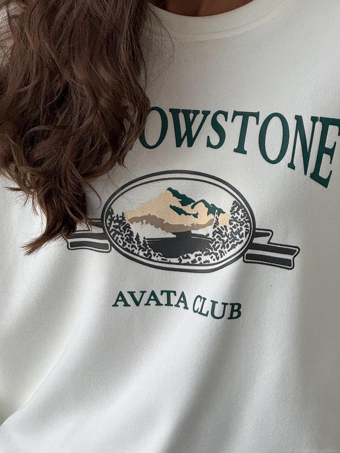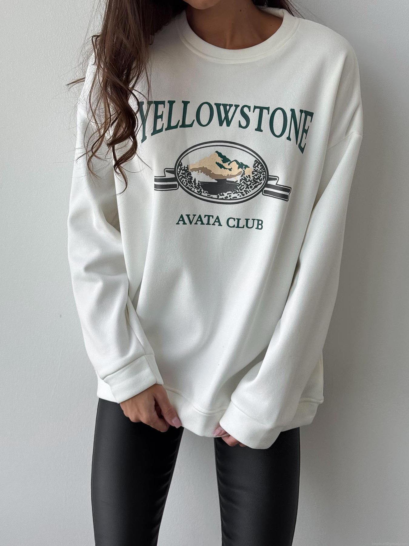 Women's Retro American Streetwear Oversized Pullover Sweatshirt Cotton Blend Round Neck Long Sleeve Top With Mountain Graphic Print