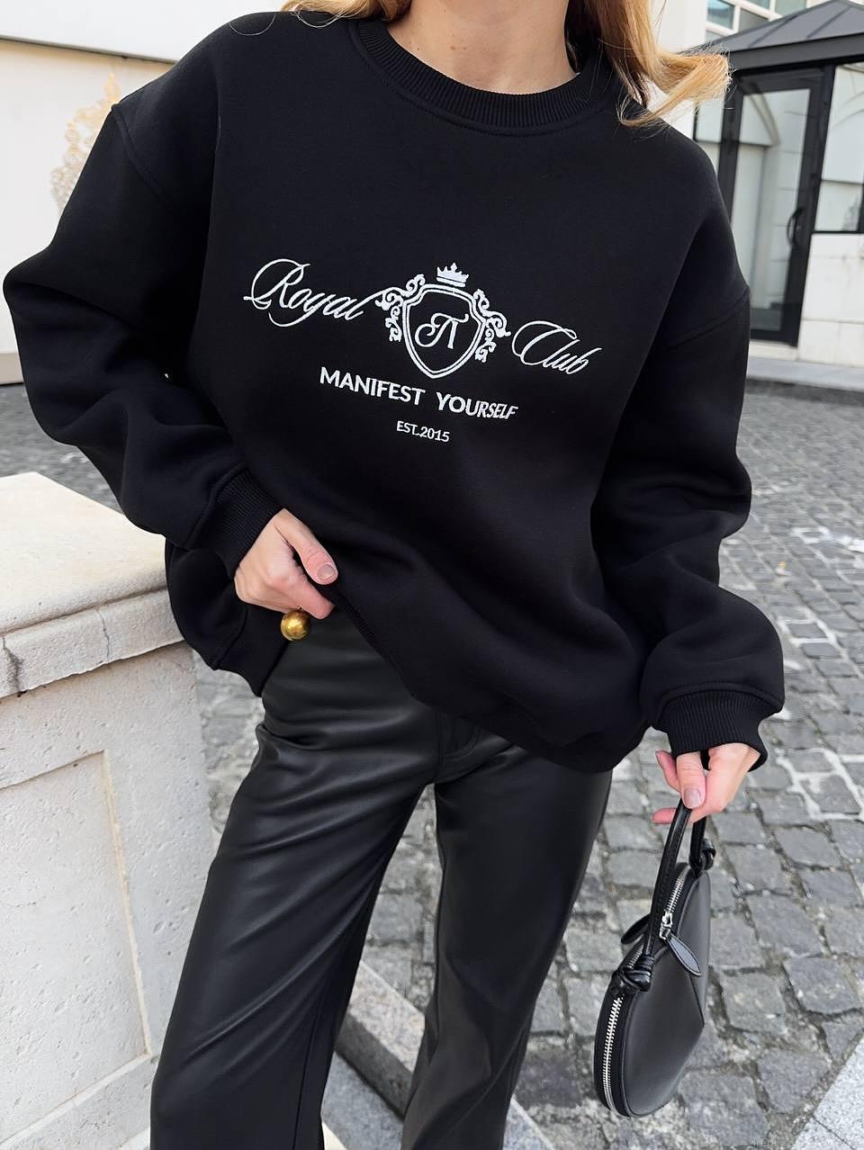 Number, Letters, Boyfriend Style, Letter Print, Crown Shield Badge, Dropped Shoulders