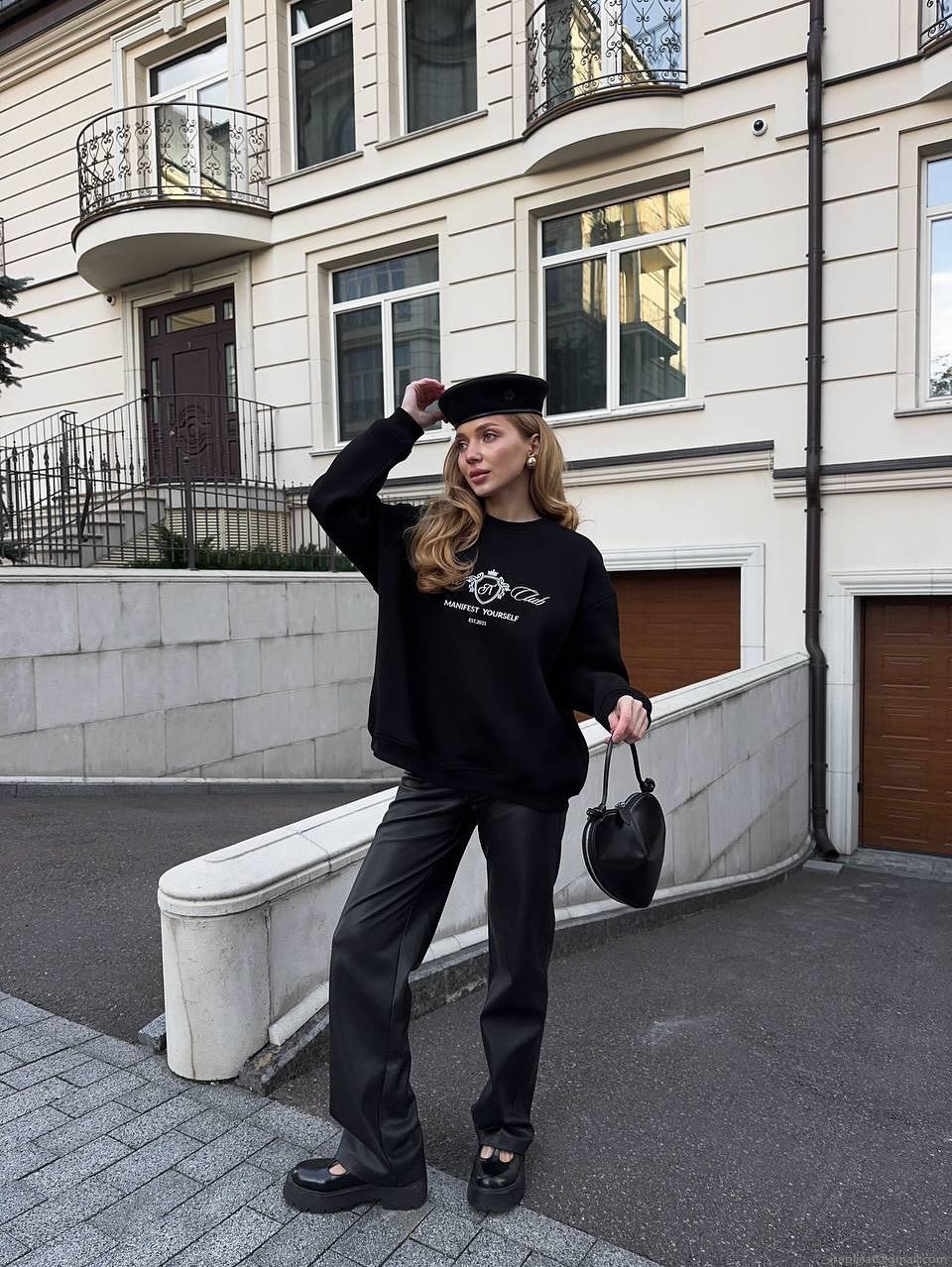 • Women's Retro Street Letter Print Sweatshirt 100% Cotton Round Neck Loose Pullover Long Sleeve Top Streetwear Fashion For Women