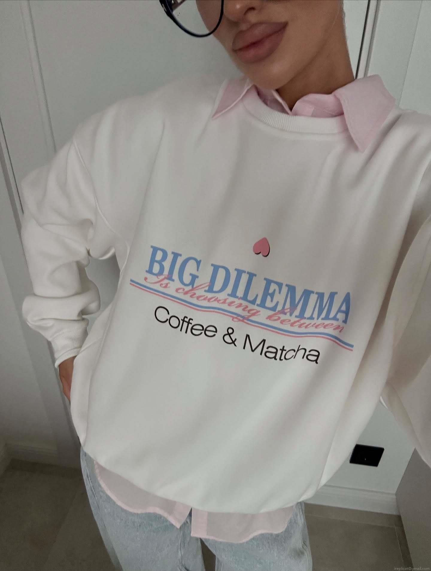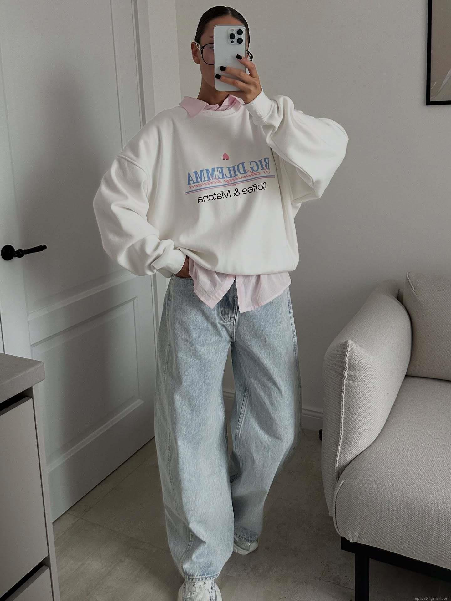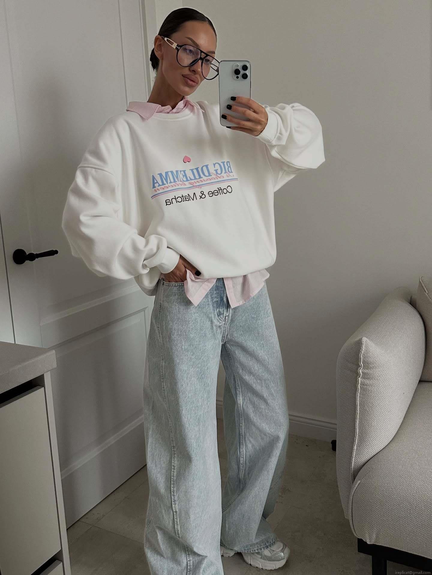 Women's Round Neck Oversize Sweatshirt 100% Cotton Long Sleeve Big Dilemma Letter Print Pullover Casual Streetwear Loose Autumn Winter Jumper Top