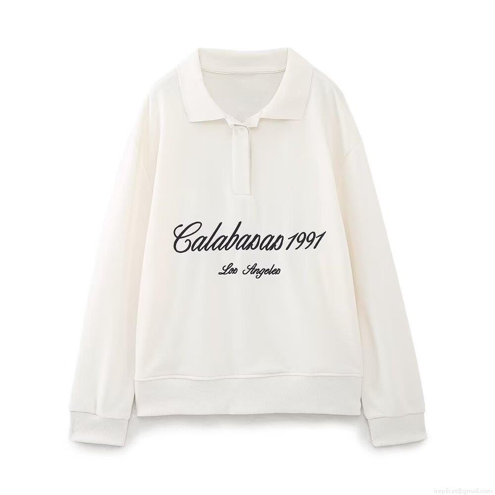 • Women's Street Style Polo Collar Long Sleeve Sweatshirt Los Angeles 1991 Letter Print Pullover Top Casual Fleece Sweatshirt For Winter