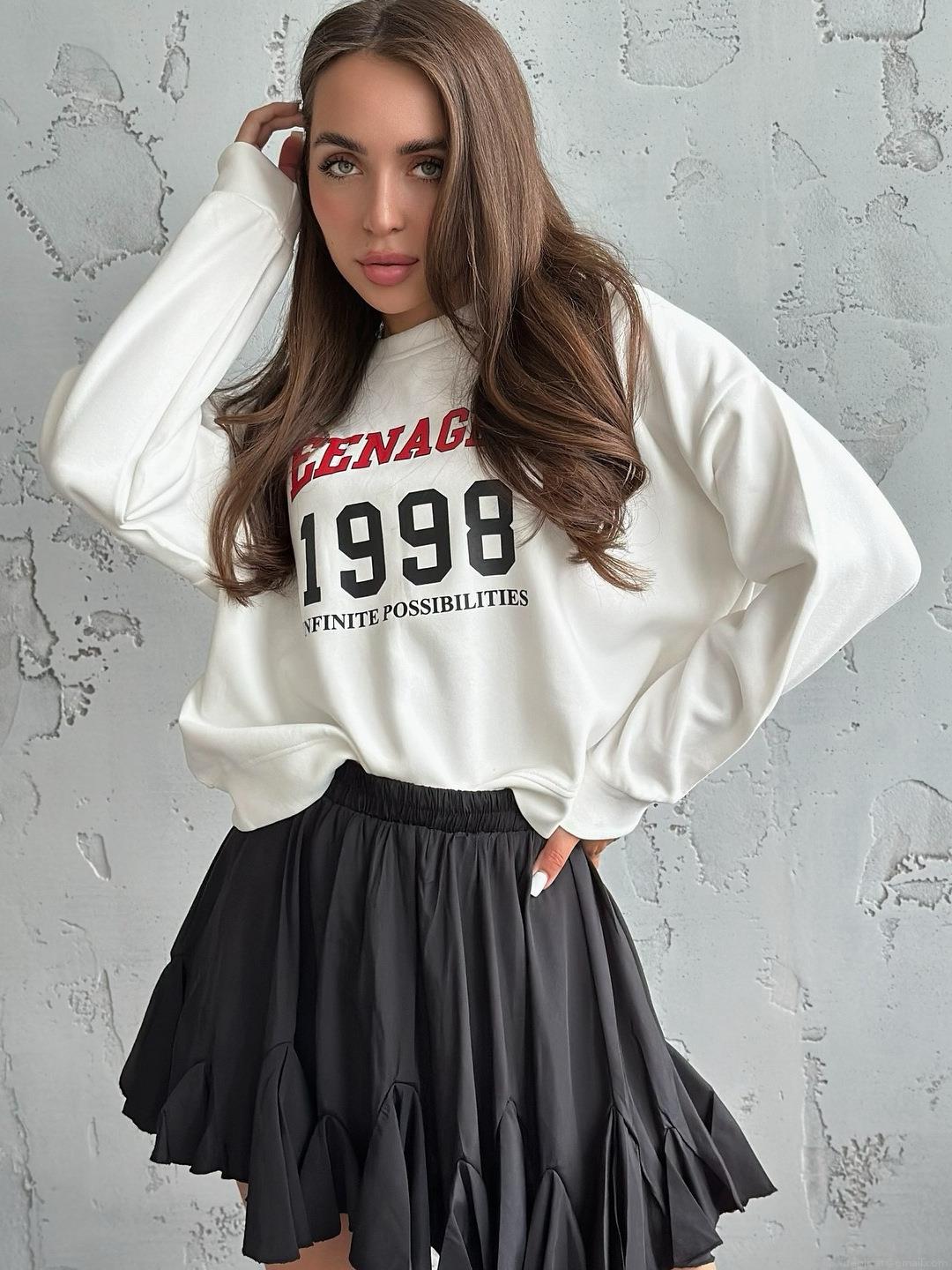 Women's Sweatshirt Loose Cotton Pullover Round Neck Long Sleeve 1998 Letter Printed Streetwear Casual Fashion Comfortable Top For Women Teenagers