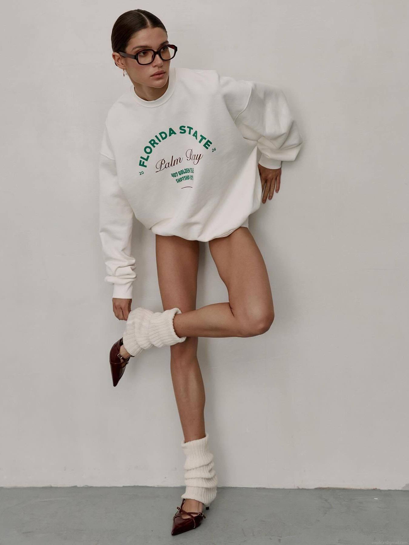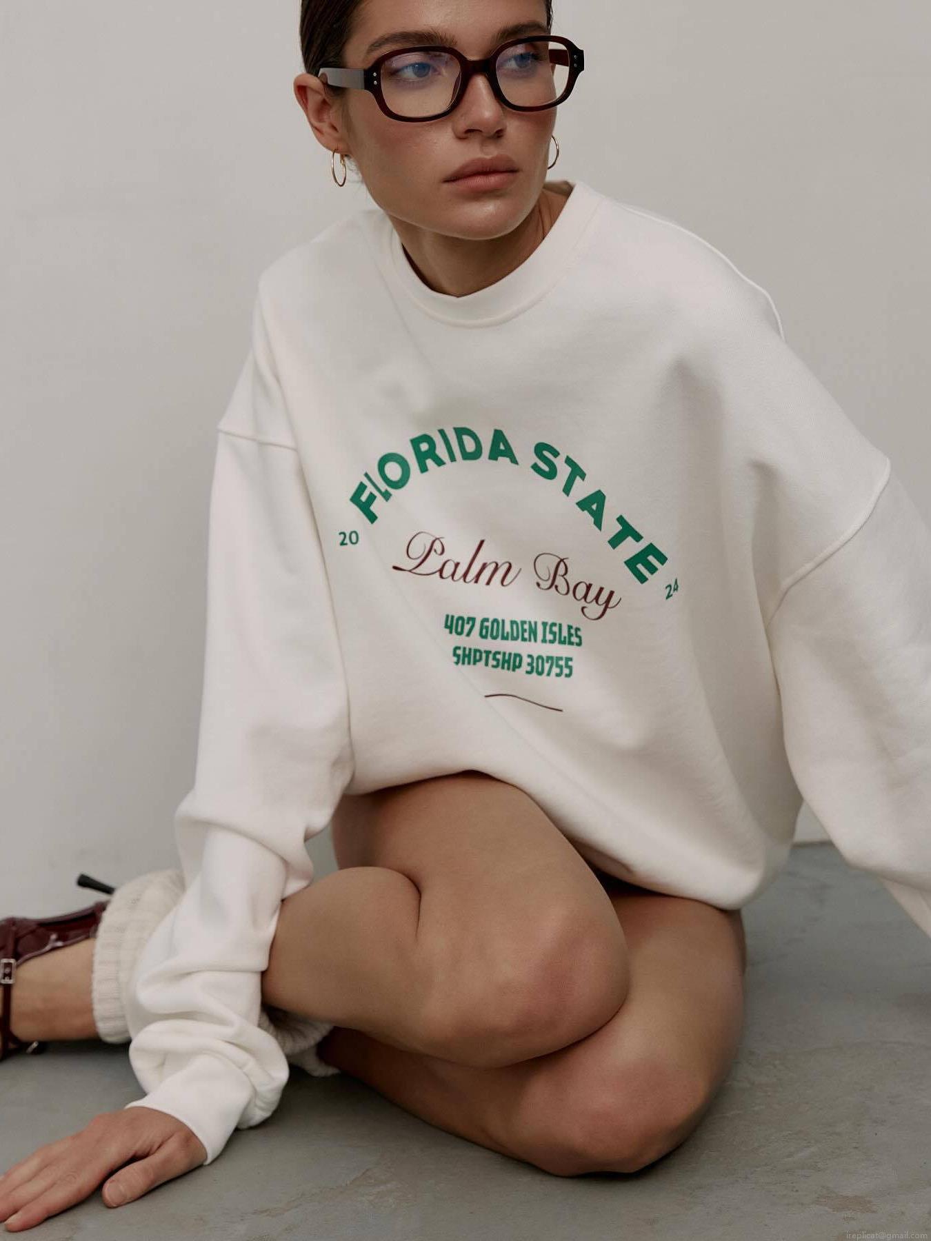 • Women's Vintage Florida State Letter Print Sweatshirt 100% Cotton Loose Round Neck Long Sleeve Casual Pullover Top For Spring Autumn