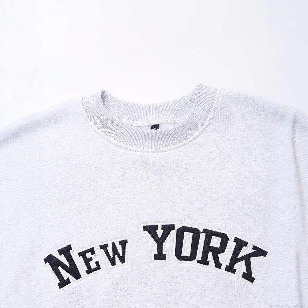 • Women's Vintage New York Letter Print Crew Neck Sweatshirt Casual Cotton Blend Long Sleeve Fleece Pullover Collegiate Style Streetwear Top