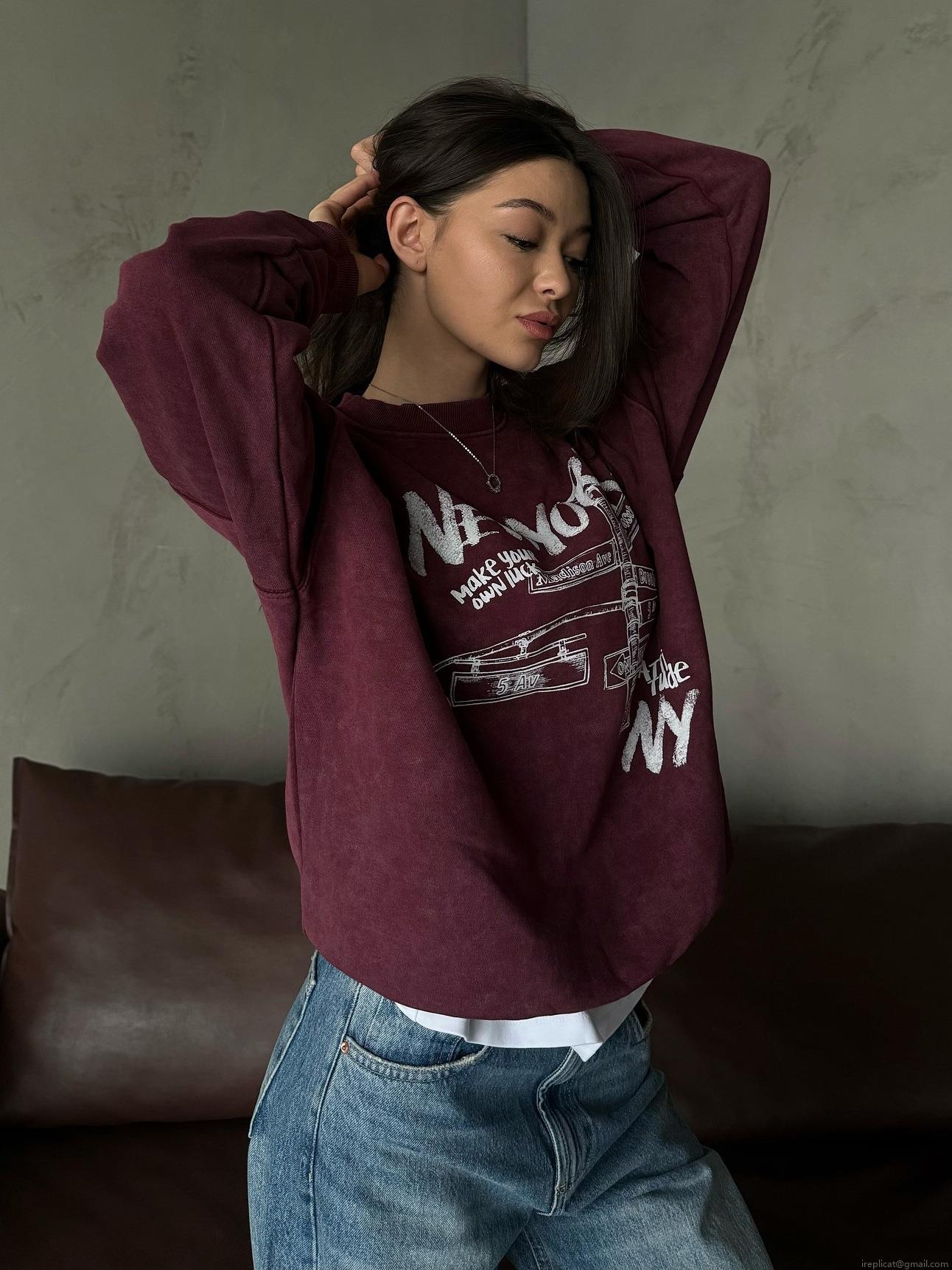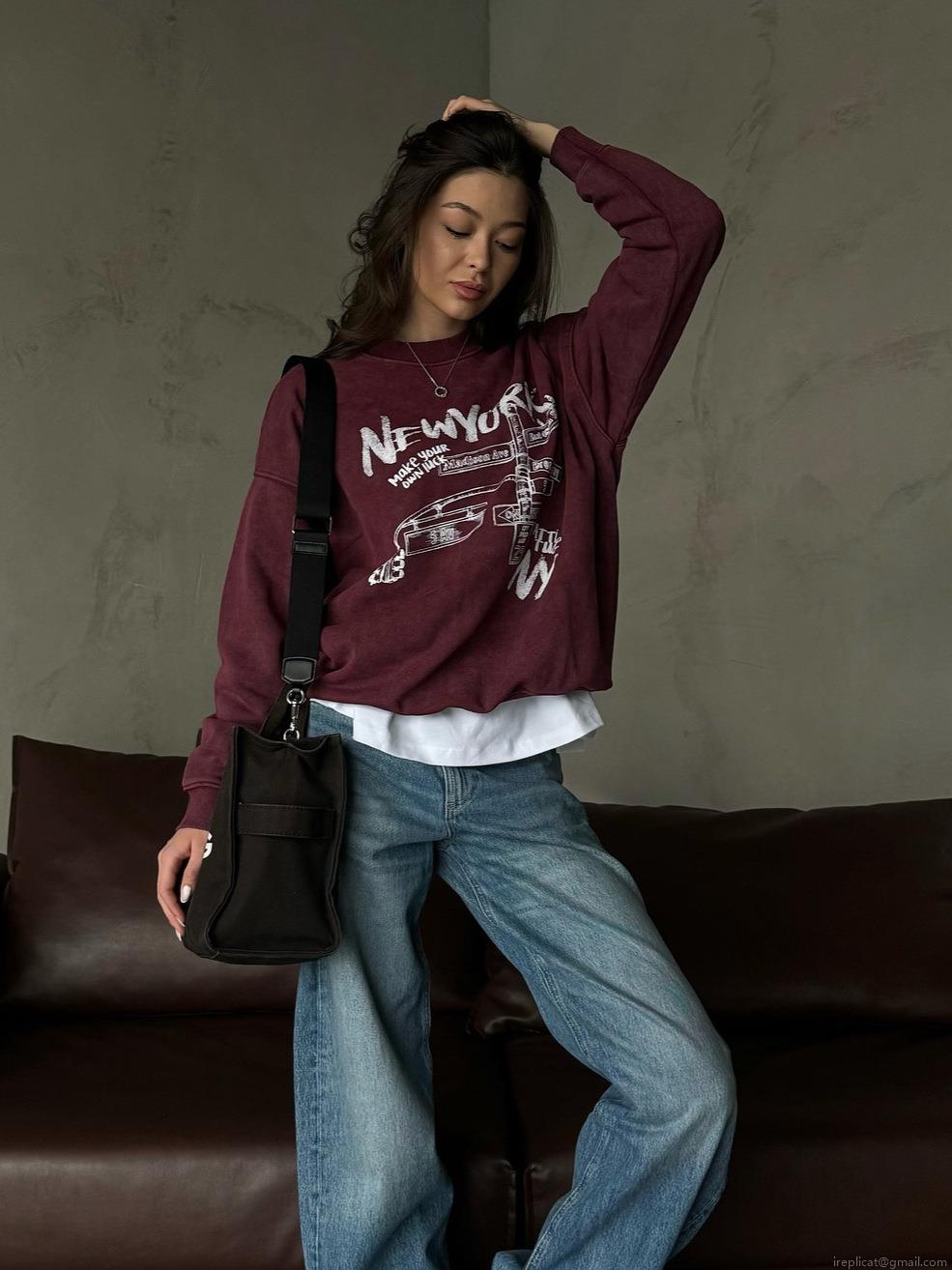• Women's Vintage New York Letter Print Sweatshirt Oversized Crewneck Long Sleeve Cotton Blend Pullover Casual Streetwear Loose Fit Top