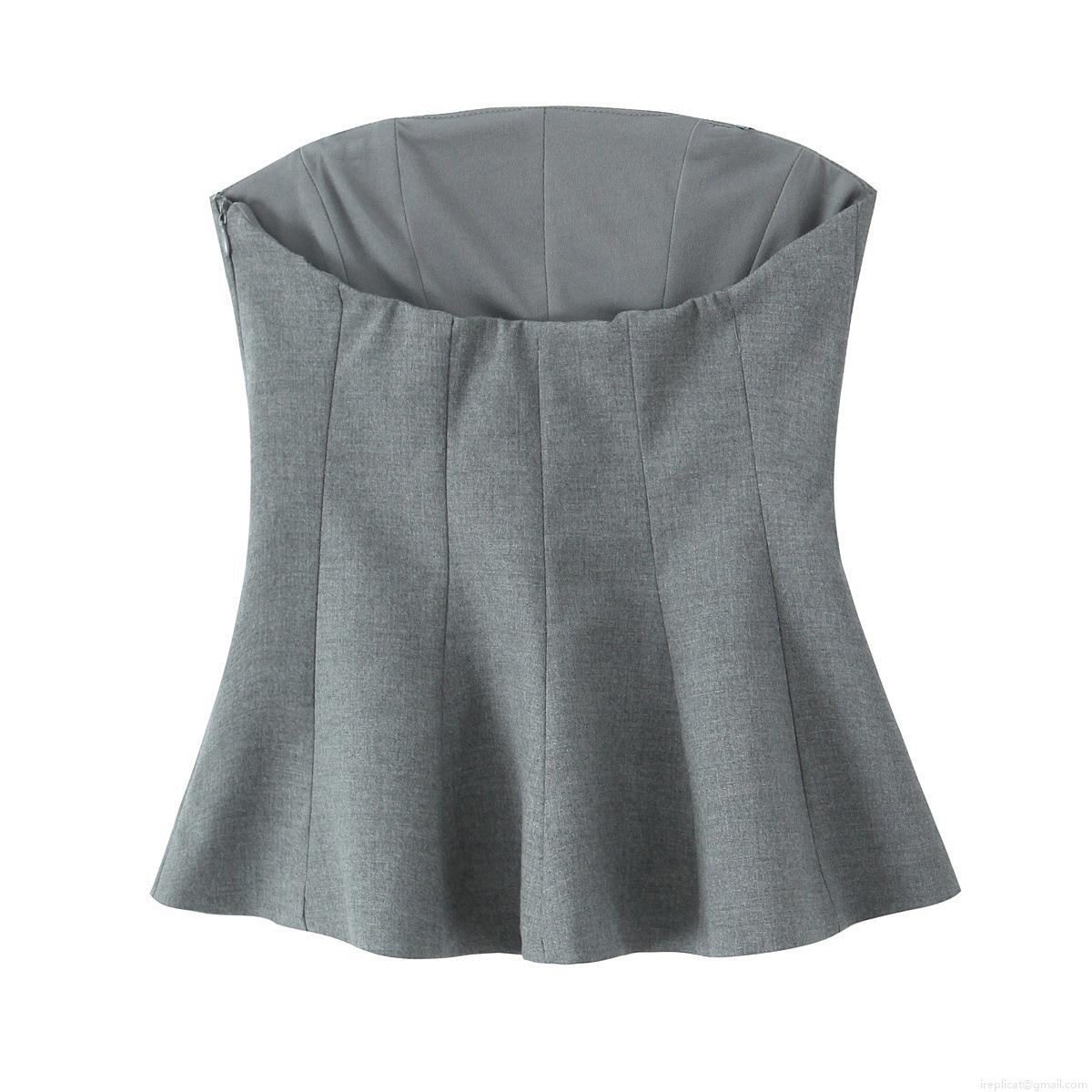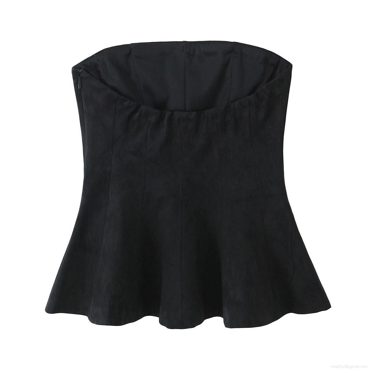 Elegant Women Strapless Peplum Tube Top Sexy Suede Woven Bodycon Bustier For Party Club Sleeveless Slim Fit Solid Color Peplum Blouse