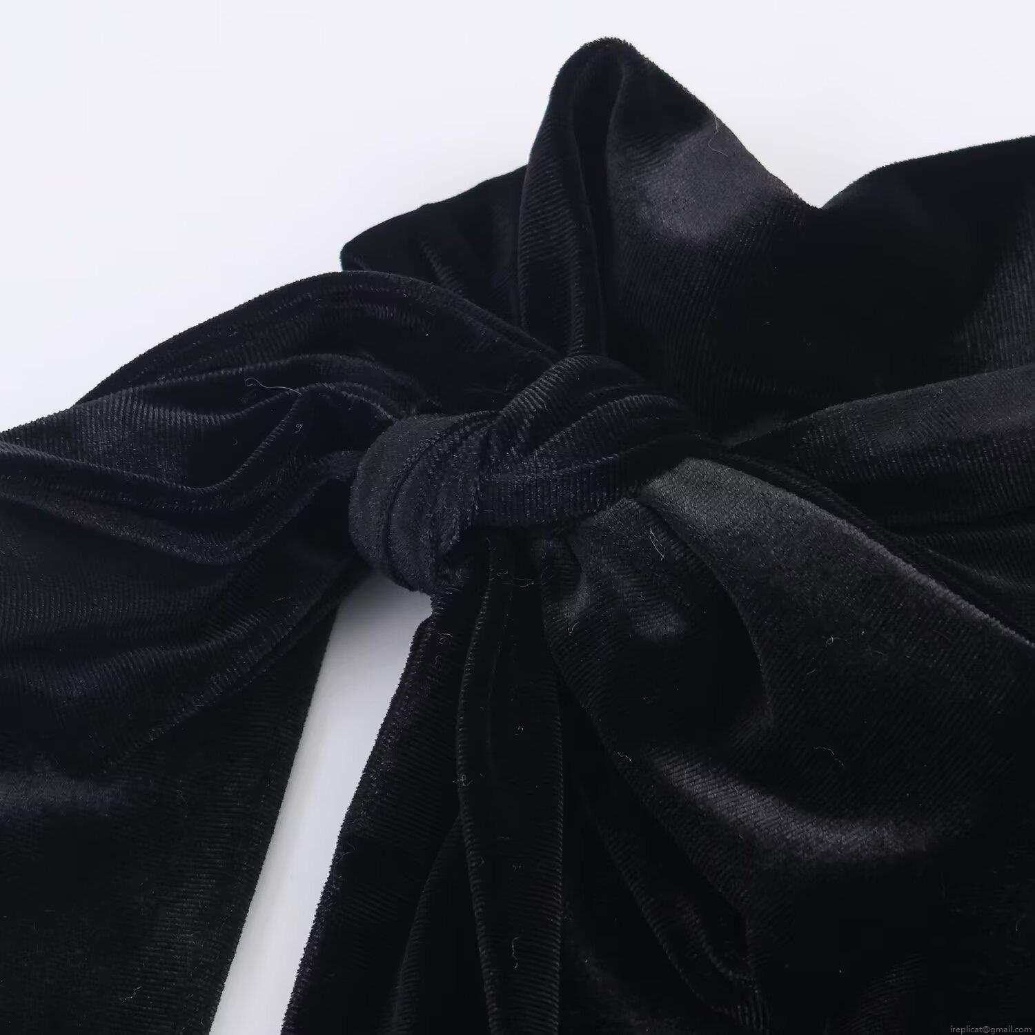 • Elegant Women's Black Velvet Halter Neck Top With Bow Detail Sleeveless Off-Shoulder Backless Cami Top For Party Clubwear Evening