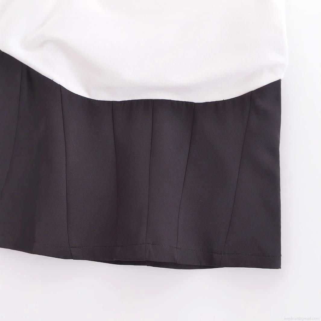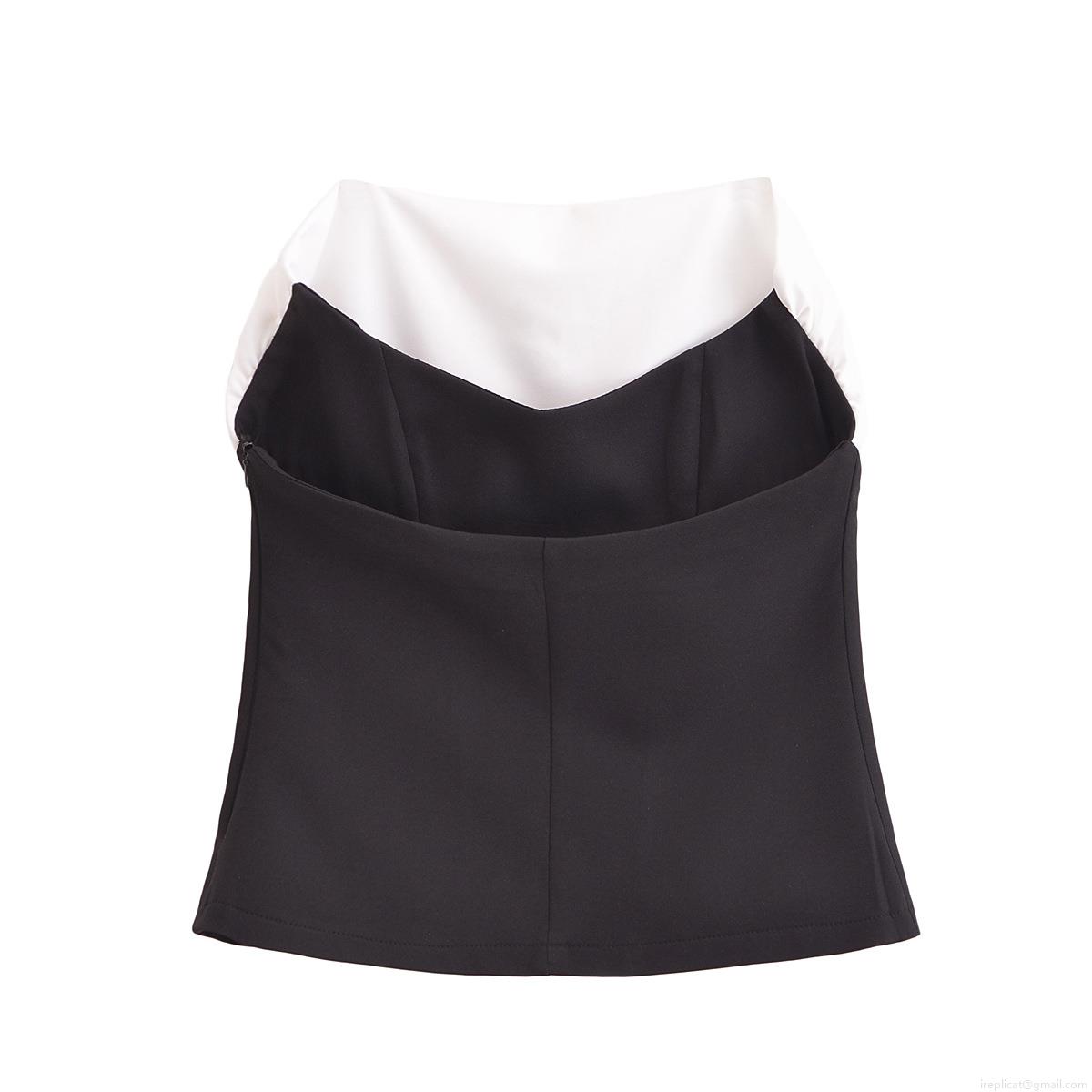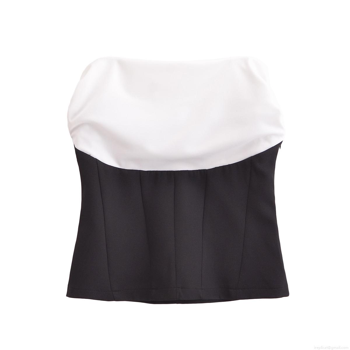 Black And White Color Blocking, Self-cultivation, Strapless, Color Blocking, Longitudinal Pleats