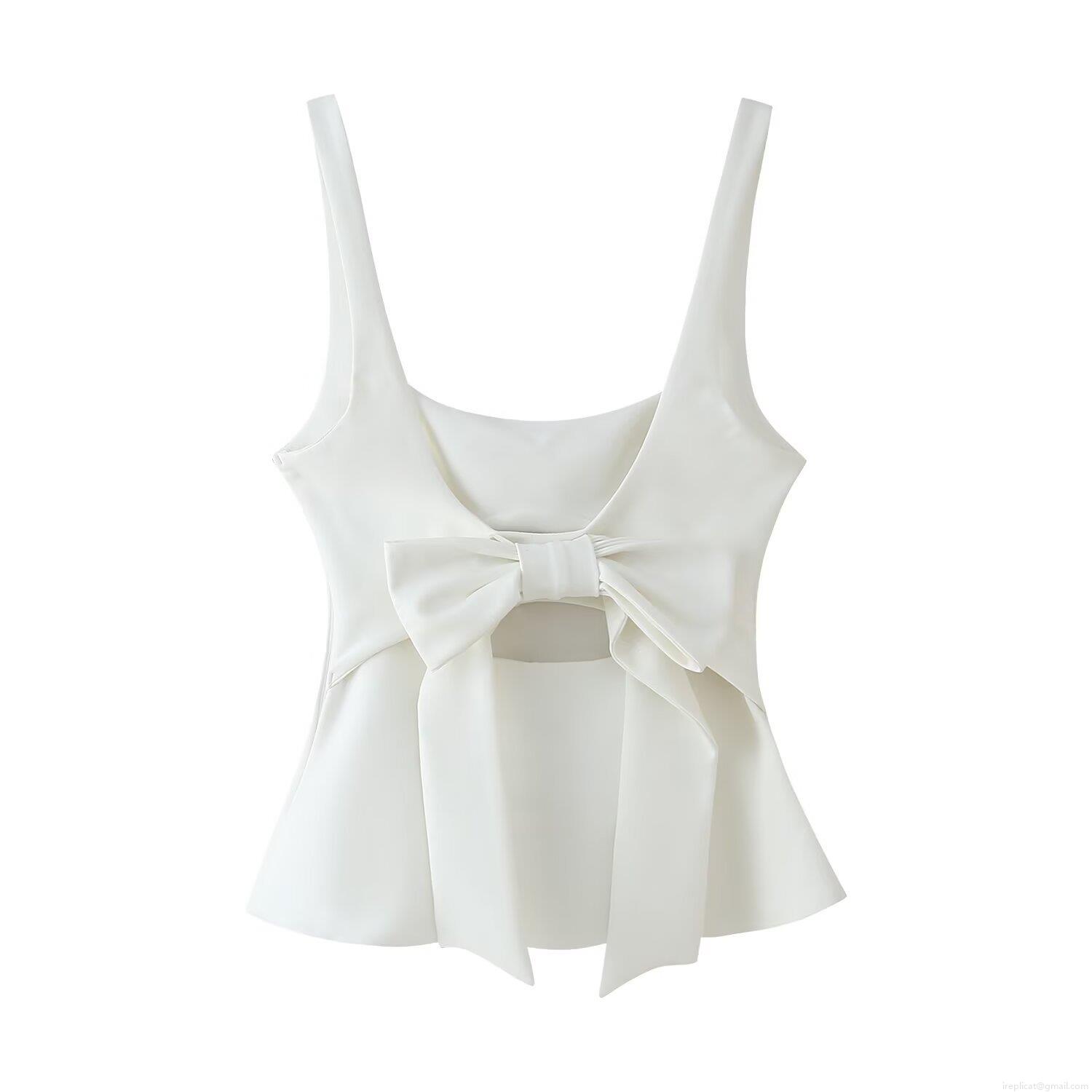 • French Sweet Women's Square Neck Cotton Tank Top Back Bow Tie Slim Fit Peplum Sleeveless Shirt Summer Casual Date Party Women Fashion Top