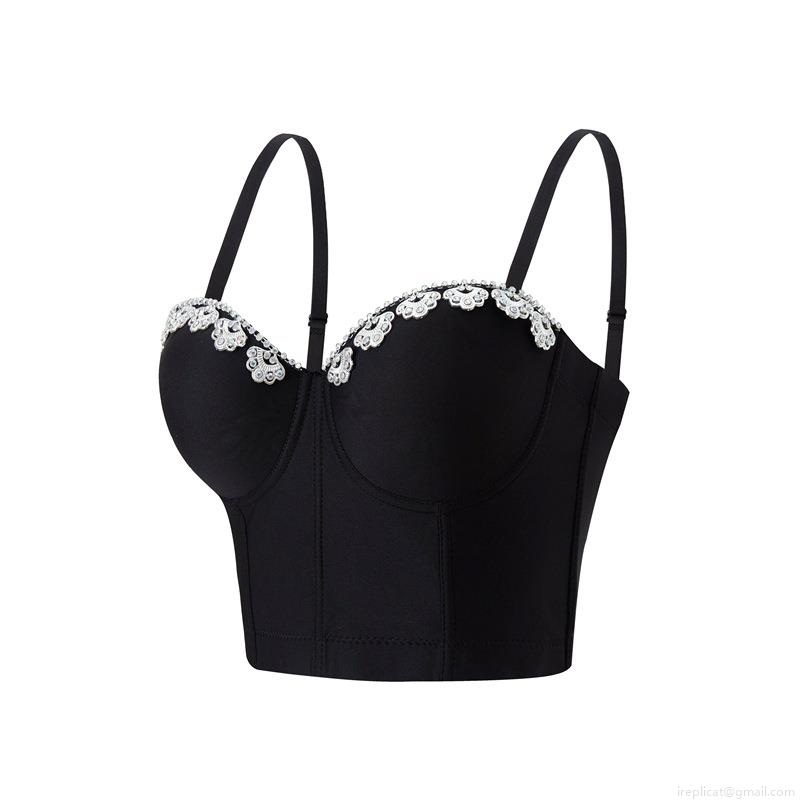 • French Vintage Rhinestone Pearl Corset Top Women Sexy Slim Fit Fishbone Bustier Padded Spaghetti Strap Camisole For Party Clubwear
