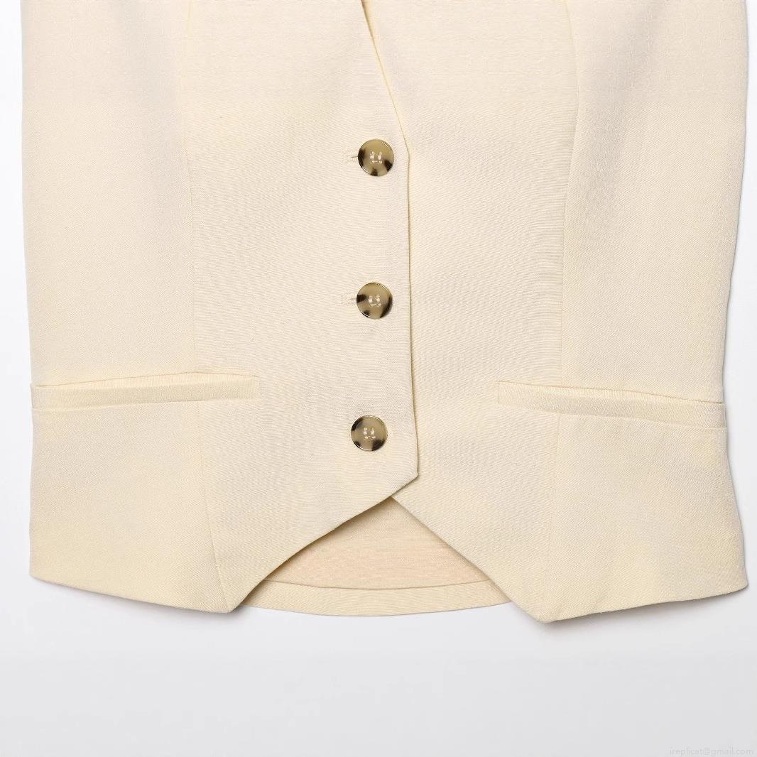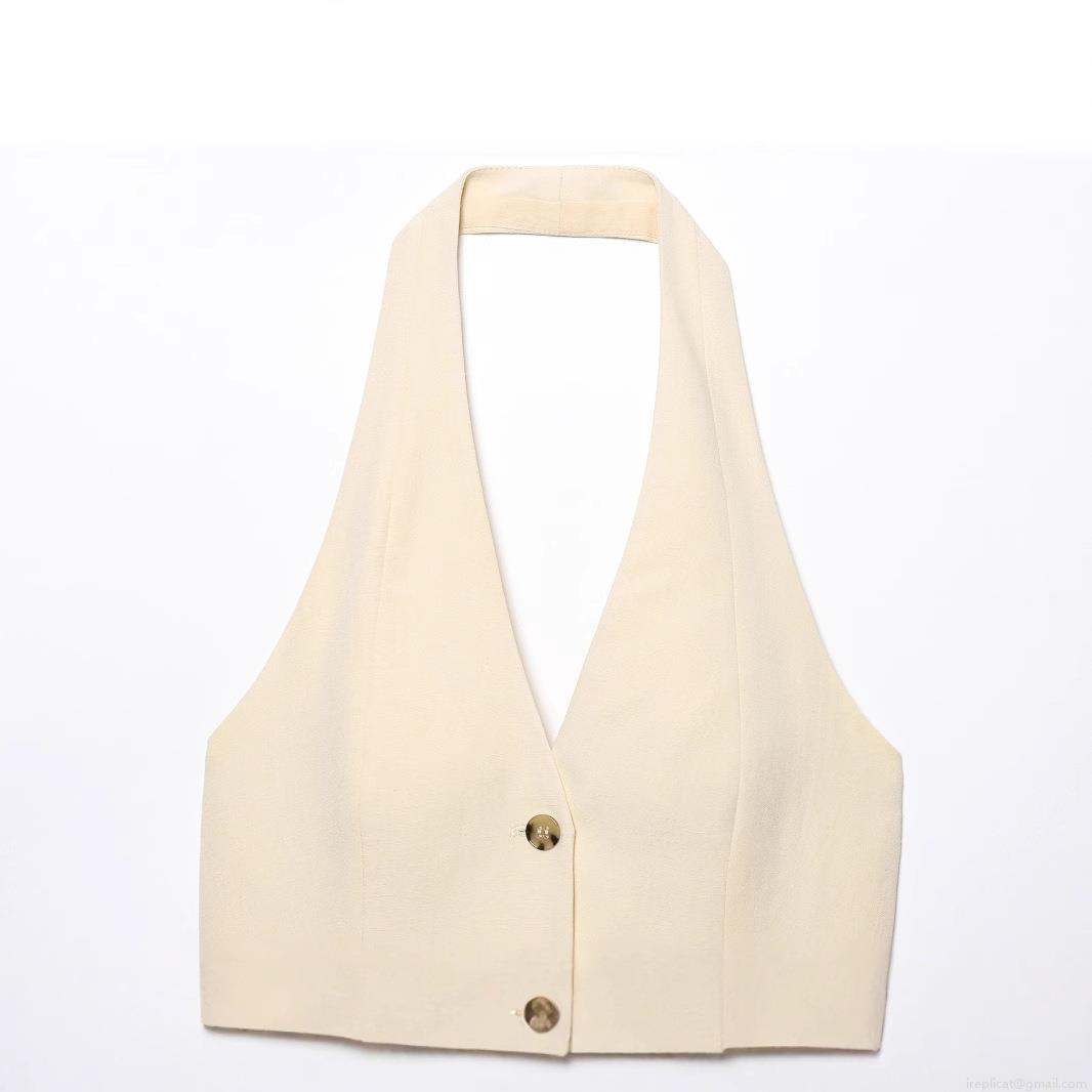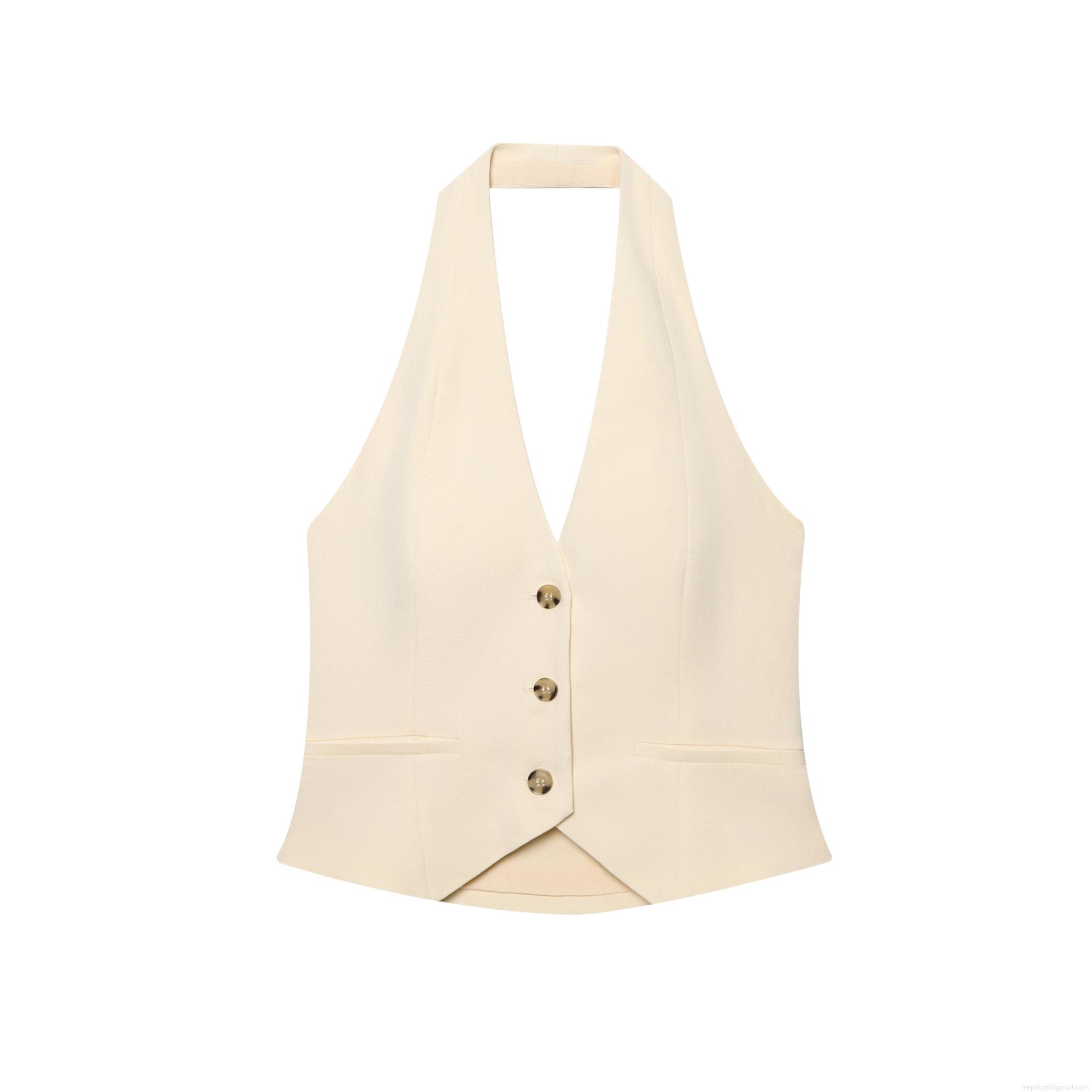 Halter Neck Suit Vest Top Women Sexy Backless Sleeveless 100% Polyester Waistcoat Solid Apricot Single Breasted Summer Elegant Chic Camisole Office Lady Outfit
