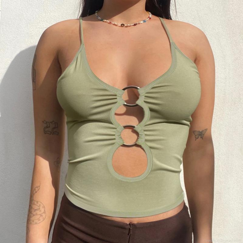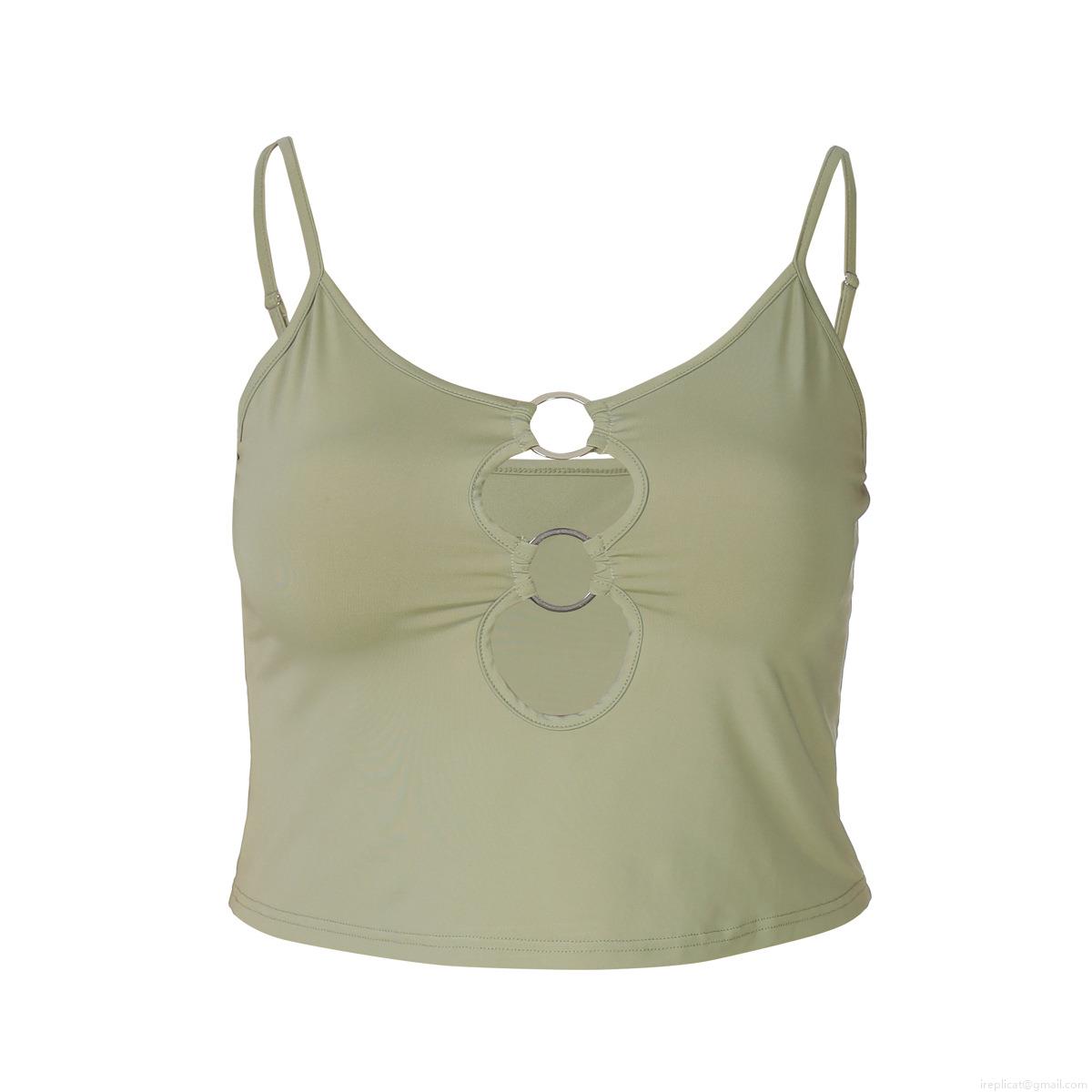 Solid Color, Hollow Out, Suspenders, Backless, Self-cultivation, Metal Ring