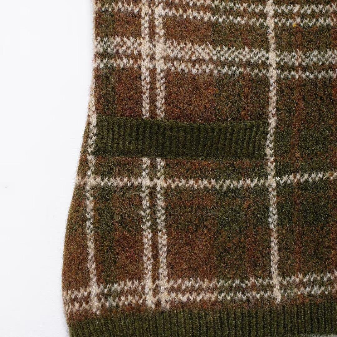 Retro British Style Plaid Knit Camisole Women Slim Fit Sleeveless Crop Top With Decorative Pockets Army Green Comfortable Pullover Top