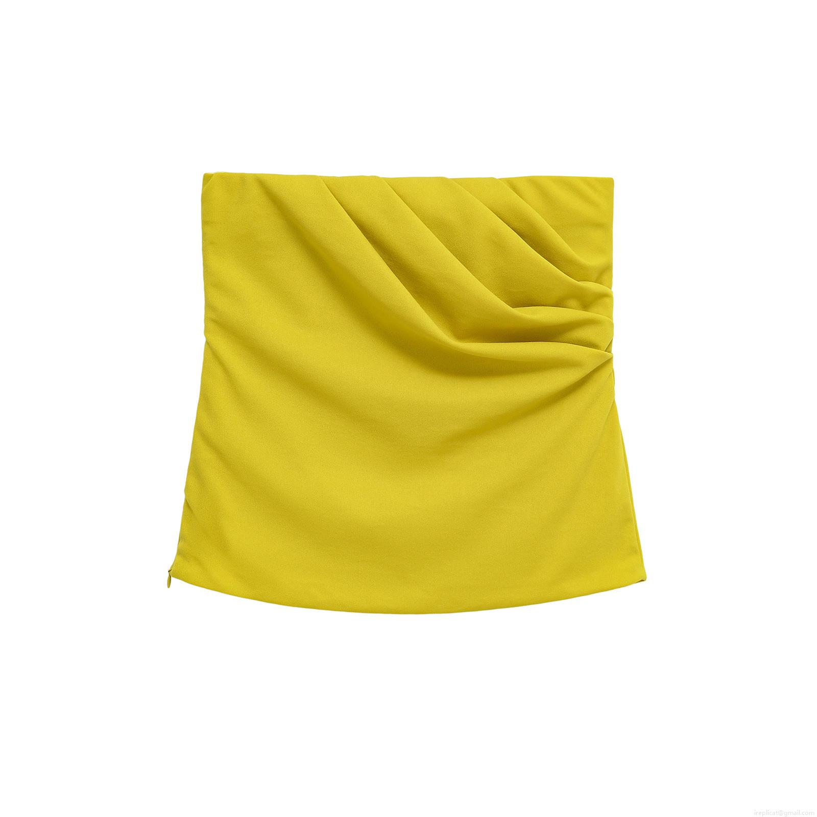 Sexy Backless Bandeau Crop Top 100% Polyester Pleated Lime Yellow Summer Street Style Top For Women Party Nightclub Dating