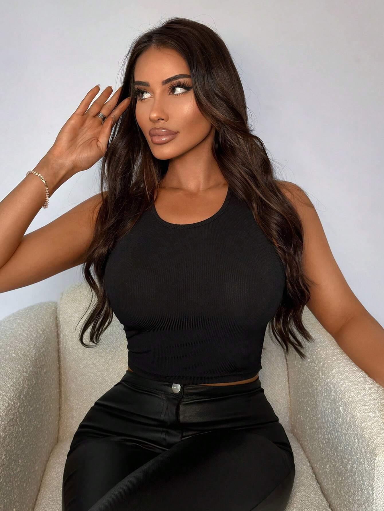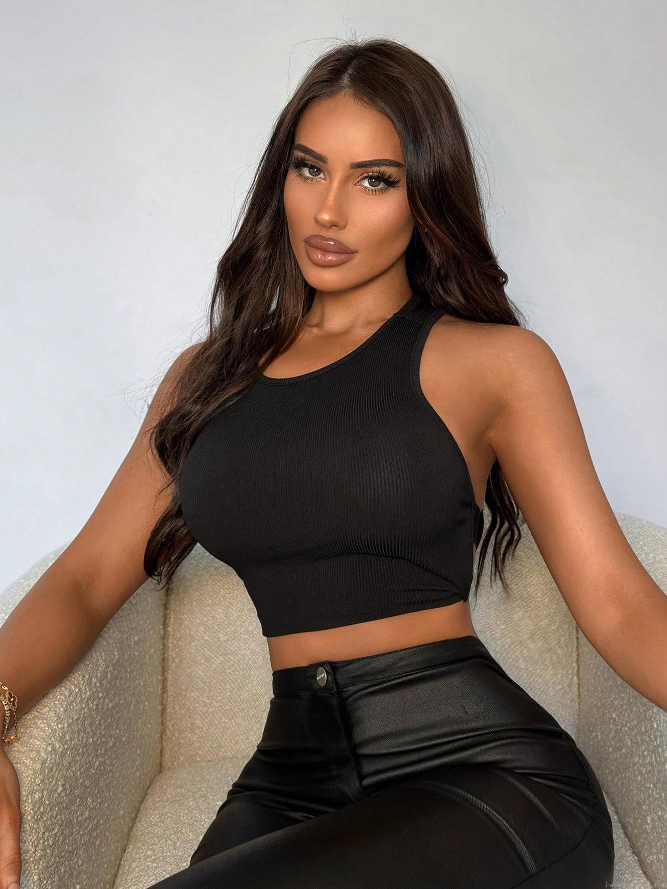 • Sexy Backless Ribbed Crop Top For Women Solid Color U Neck Sleeveless Tank Top Polyester Elastane Blend Summer Slim Fit Streetwear Top