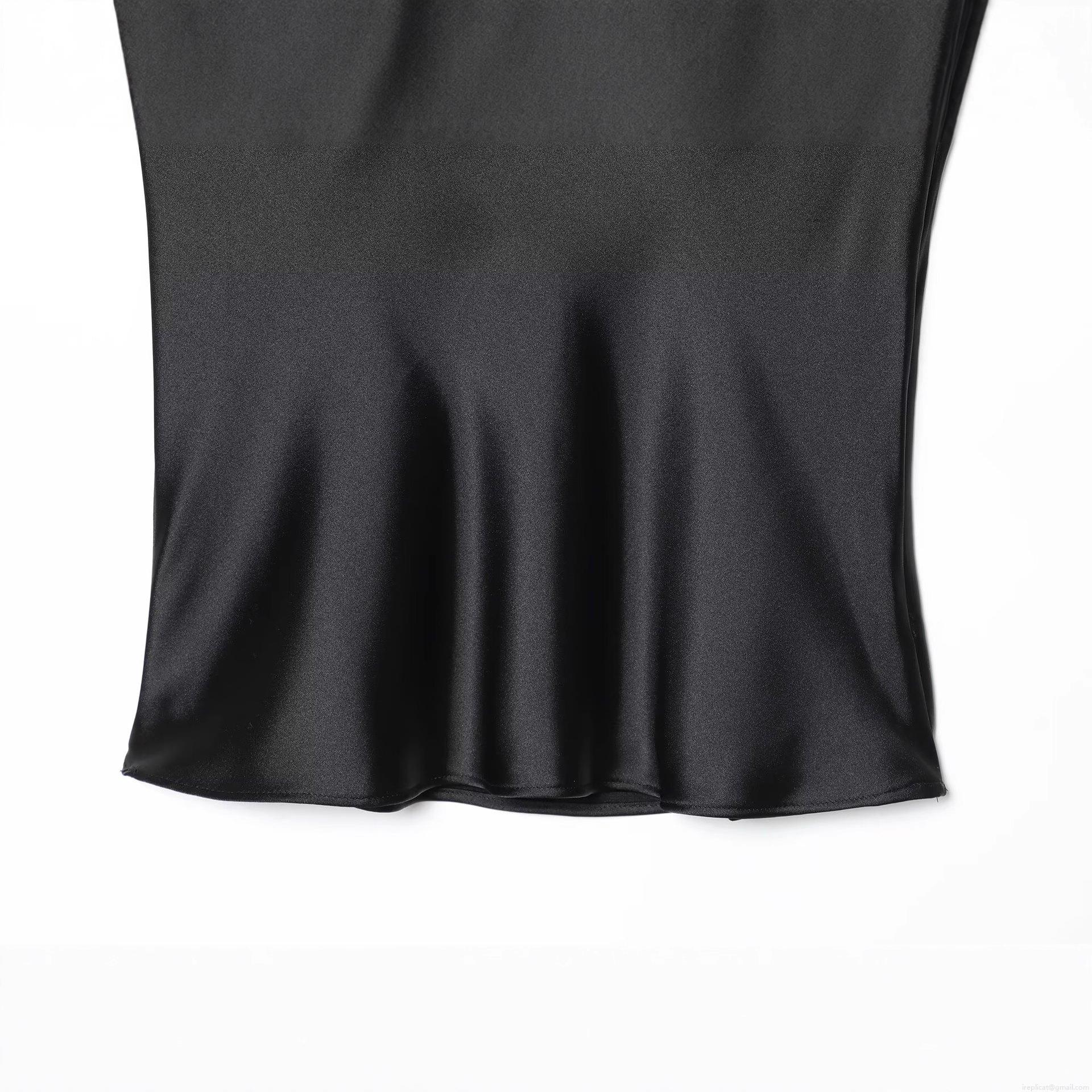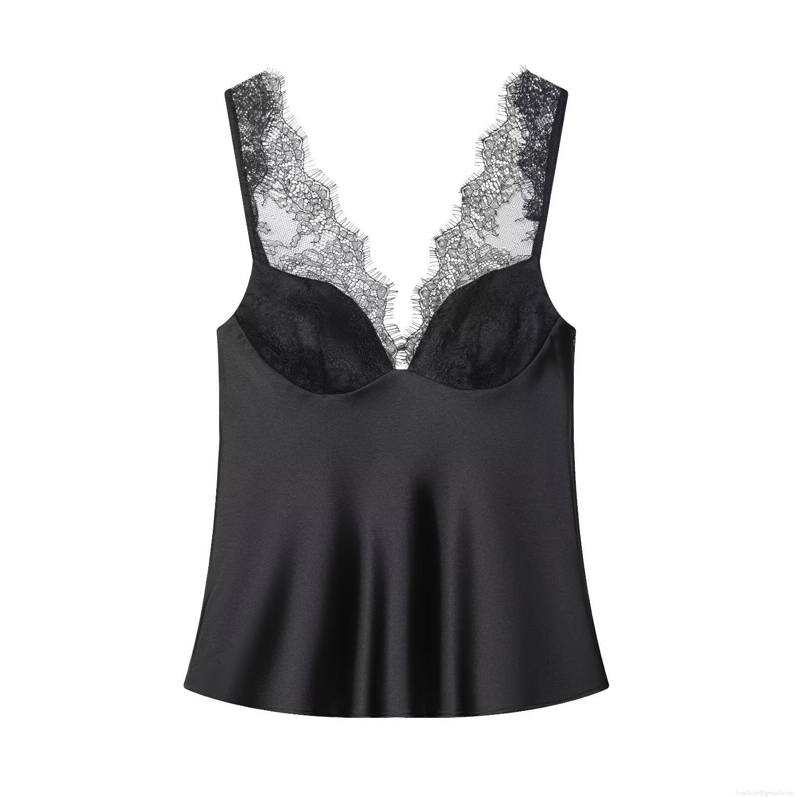 Sexy Black Satin Camisole With Lace Trim V Neck Sleeveless Backless Tank Top For Women Fashion Slim Fit Clubwear Party Strappy Blouse