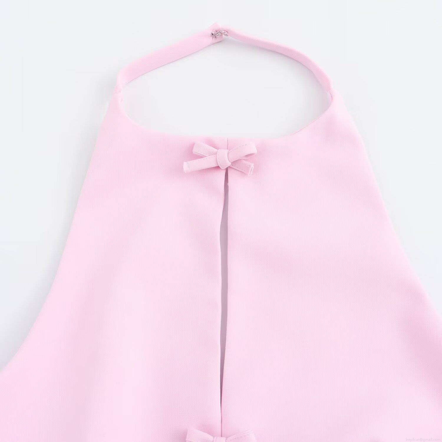 Solid Color, Bow, Neckband, Backless, Front Center Slit
