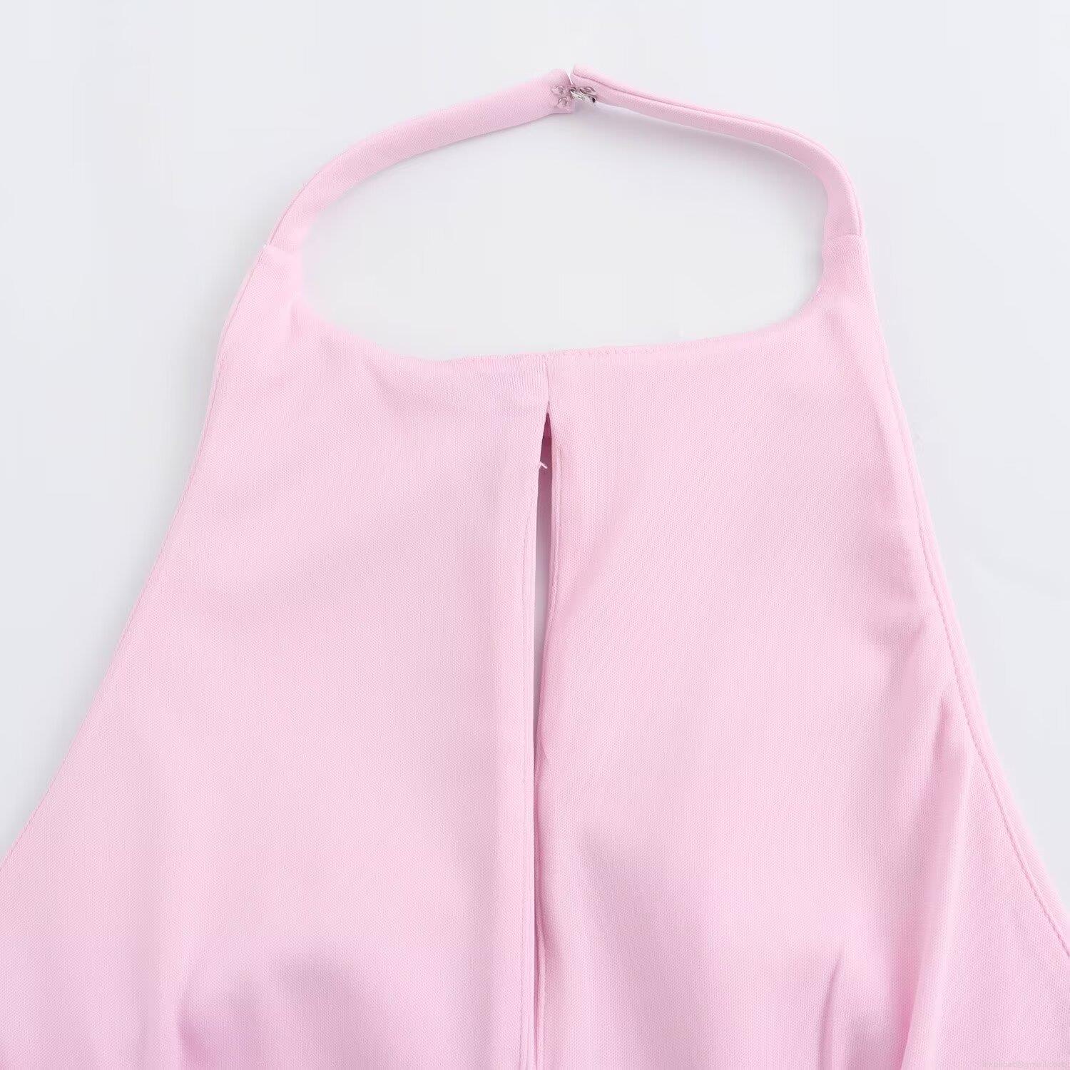 • Sexy Halter Neck Bow Top Women Summer Backless Front Slit Slim Fit Sleeveless Polyester Spandex Top for Vacation Party Socialite Style