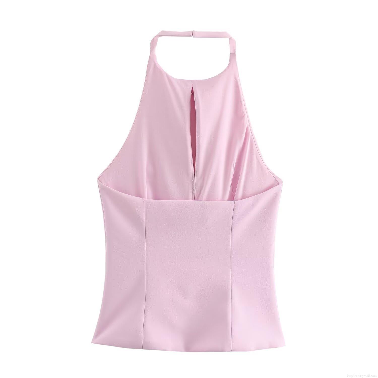 Sexy Halter Neck Bow Top Women Summer Backless Front Slit Slim Fit Sleeveless Polyester Spandex Top for Vacation Party Socialite Style