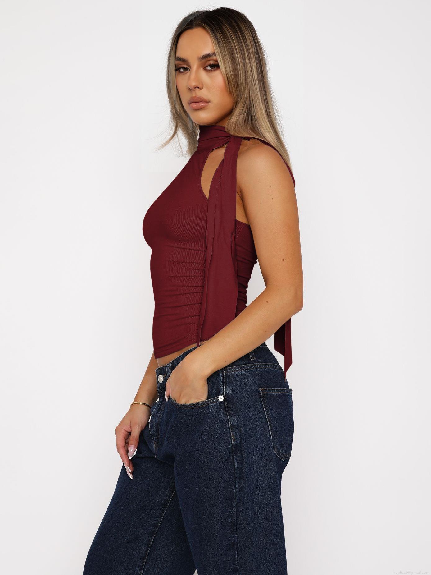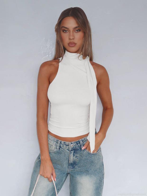 • Sexy Halter Neck Ribbed Knit Tank Top Women Elegant Backless Streetwear Slim Fit Sleeveless Vest With Side Streamer Y2K Clubwear Top