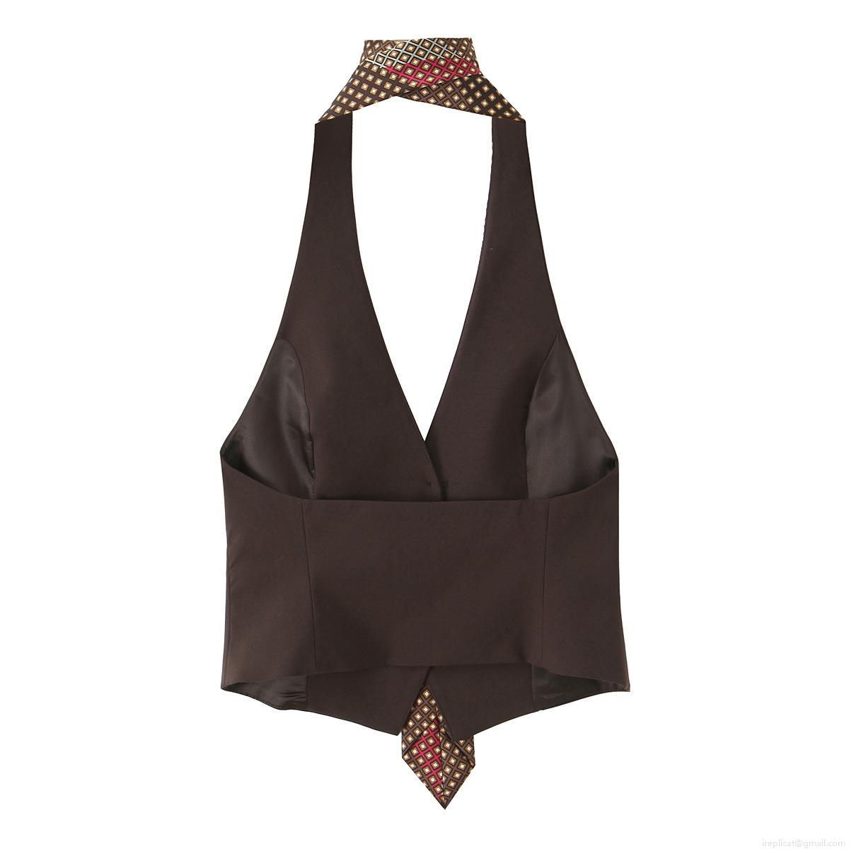 • Sexy Halter Neck Tie Vest Top Women Polyester Acrylic Geometric Diamond Print Button Front Retro Streetwear Sleeveless Camisole Blouse