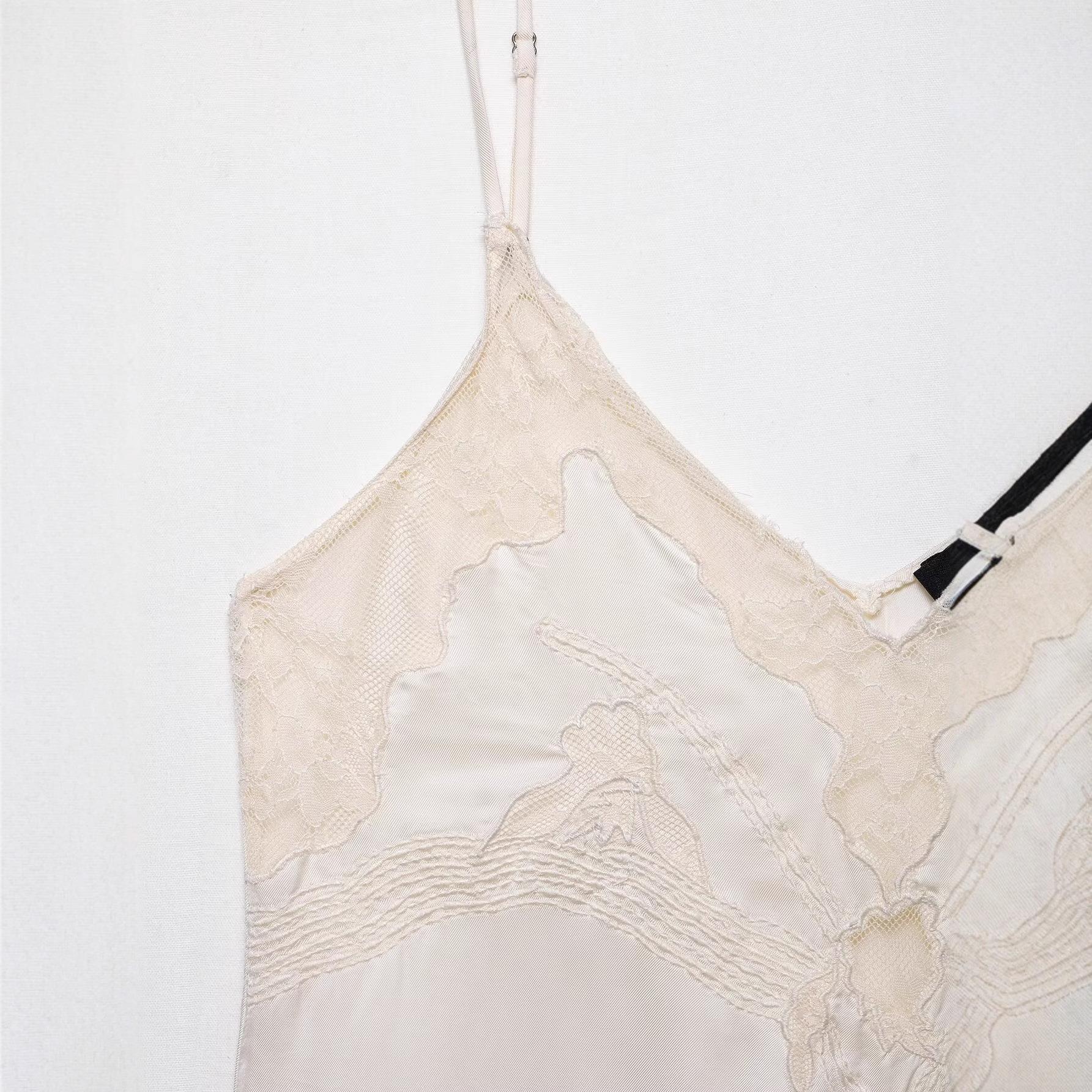 Solid Color, V-neck, Lace Patchwork, Lace Pattern, Satin Finish, Adjustable Shoulder Straps