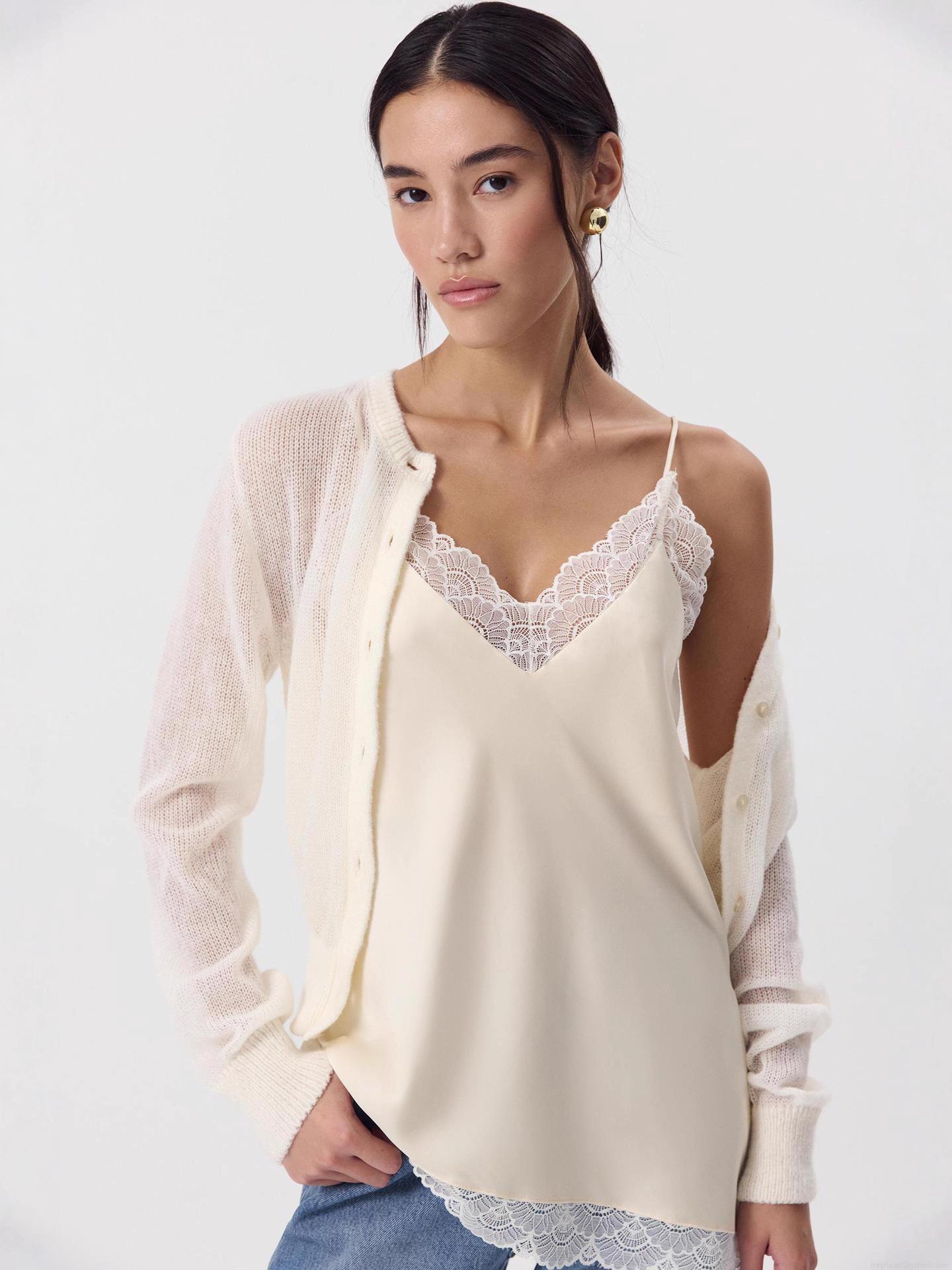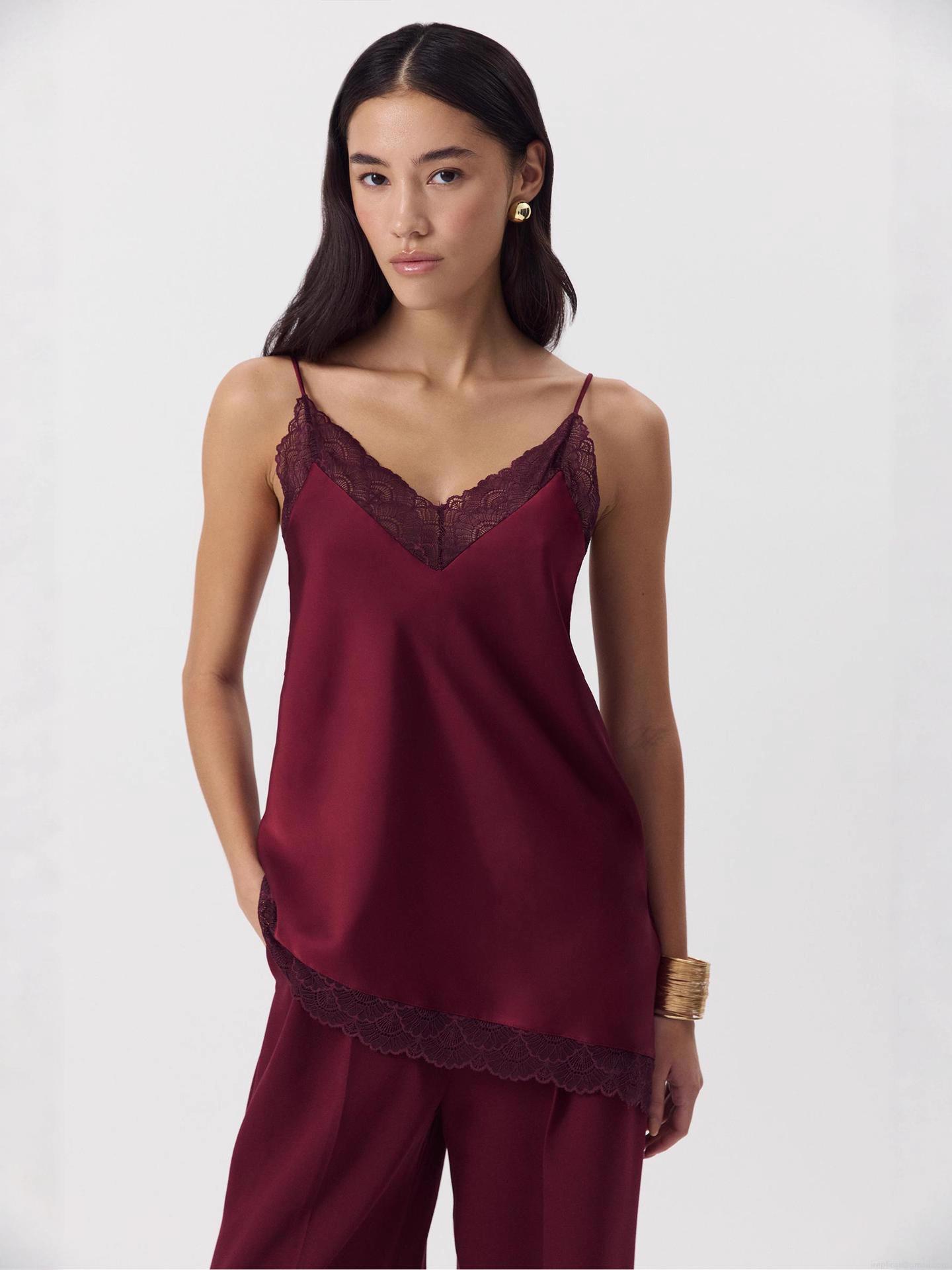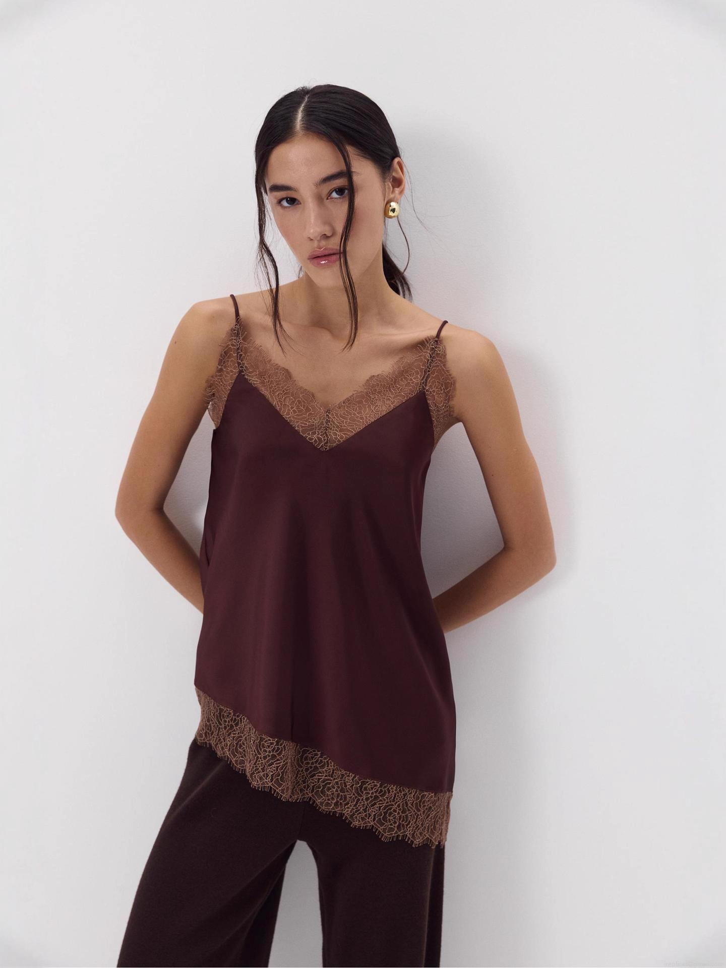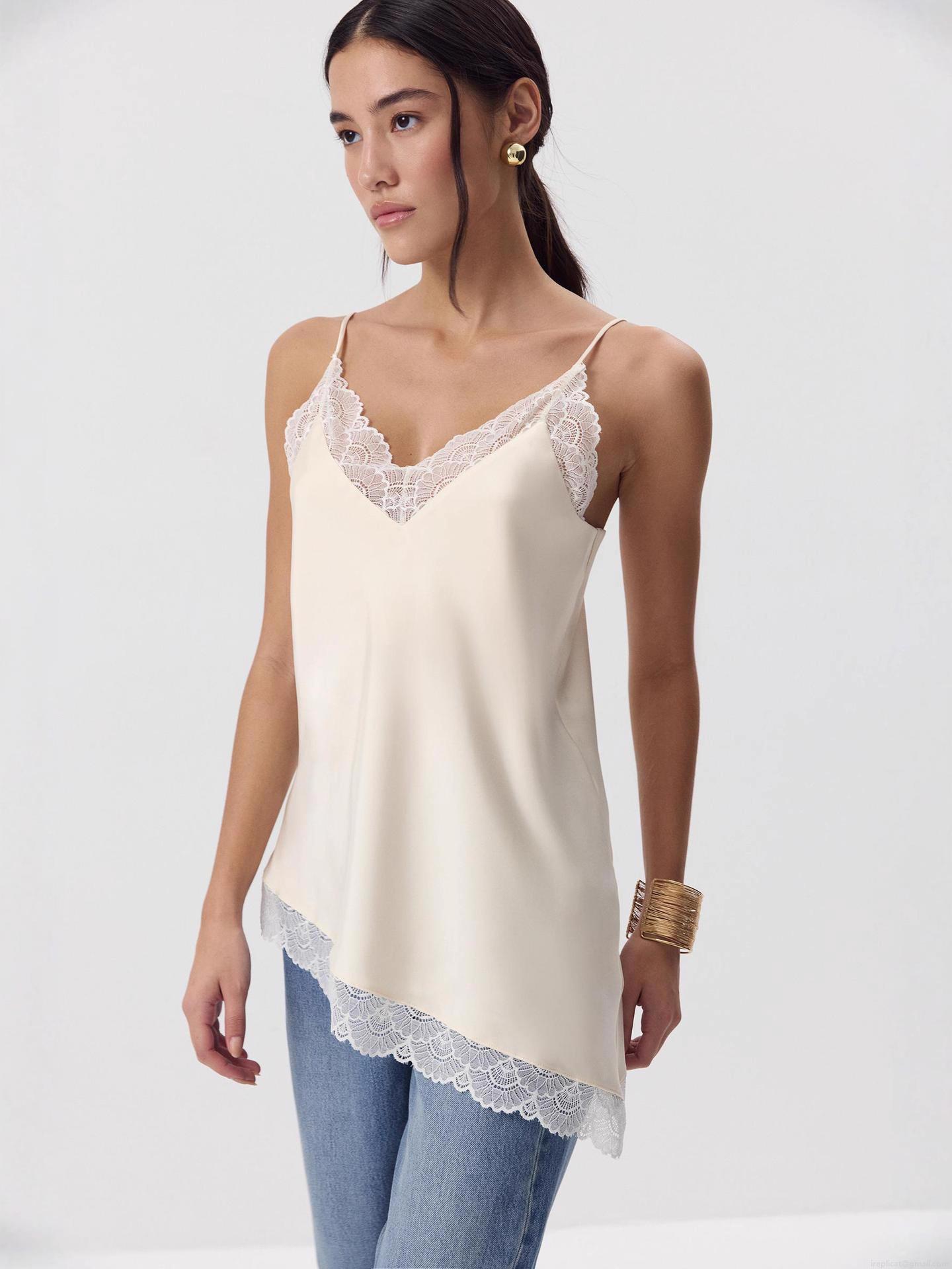 • Sexy Lace Patchwork V-Neck Camisole Satin Polyester Sleeveless Slim Fit Tank Top For Women Summer Casual Party Date Night Elegant Streetwear Top