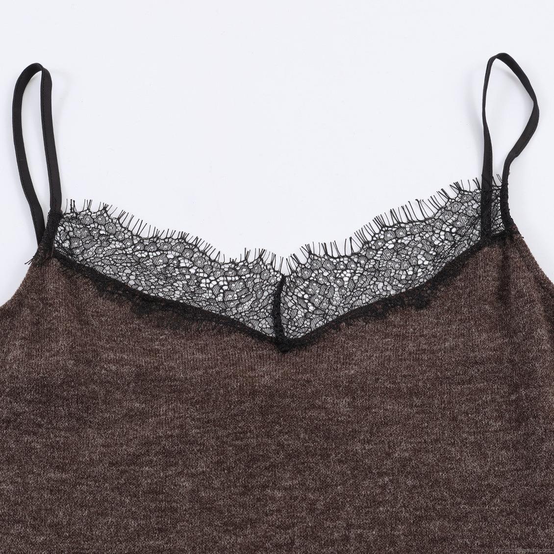 • Sexy Lace Trim V-Neck Spaghetti Strap Camisole Women Knit Slim Fit Sleeveless Tank Top Elegant Basic Ribbed Vest For Club Party Daily Streetwear