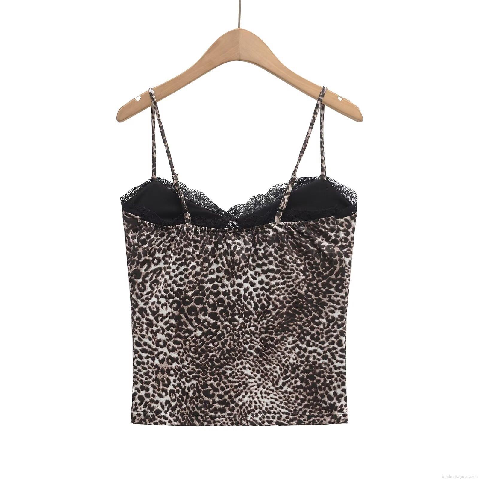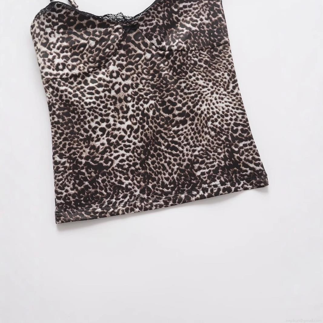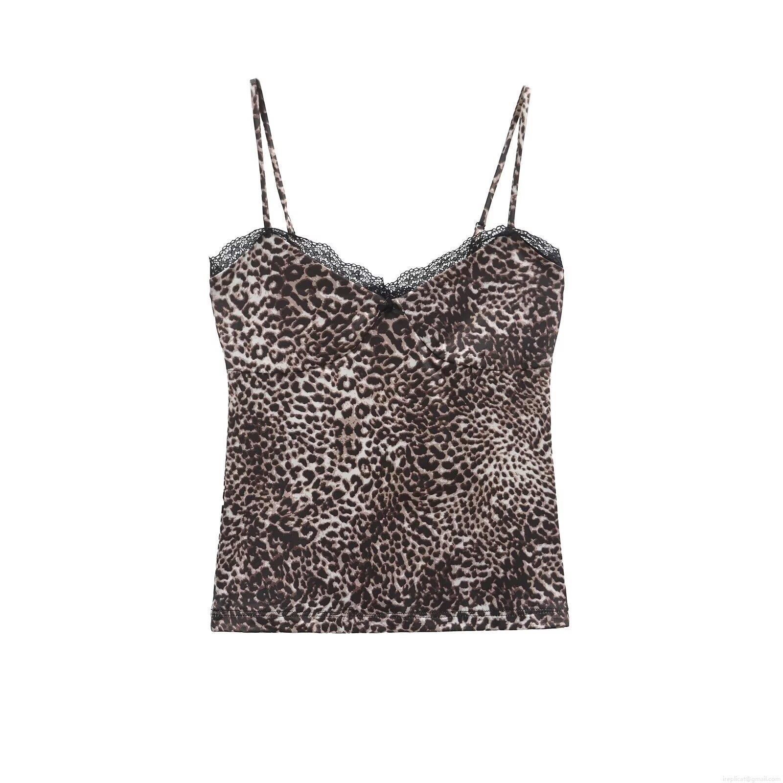 Sexy Leopard Print Cami Top Women Lace Trim V-Neck Slim Fit Camisole With Adjustable Straps Bow Detail Streetwear Clubwear Sleeveless Top
