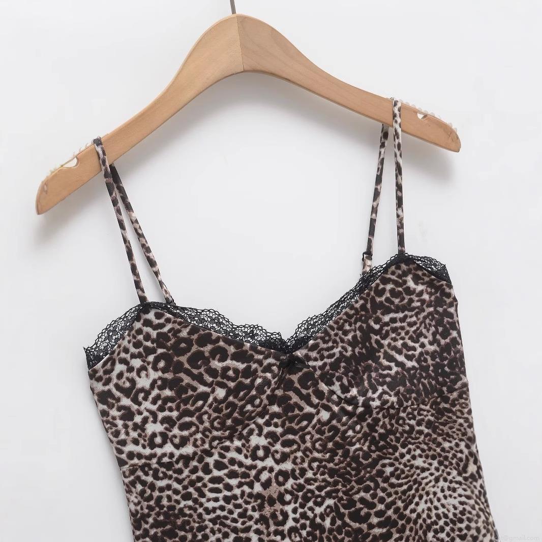 • Sexy Leopard Print Cami Top Women Lace Trim V-Neck Slim Fit Camisole With Adjustable Straps Bow Detail Streetwear Clubwear Sleeveless Top