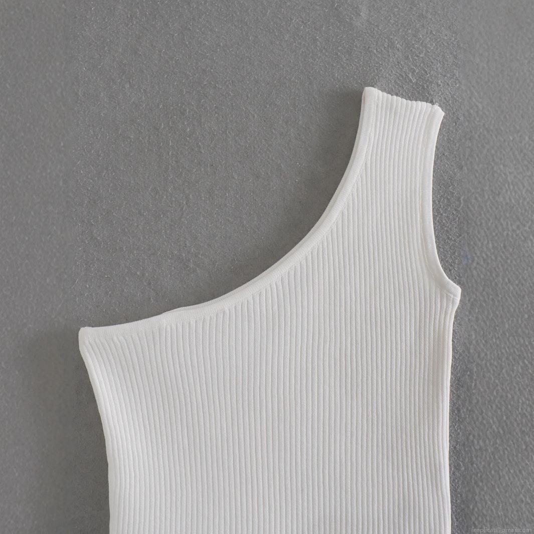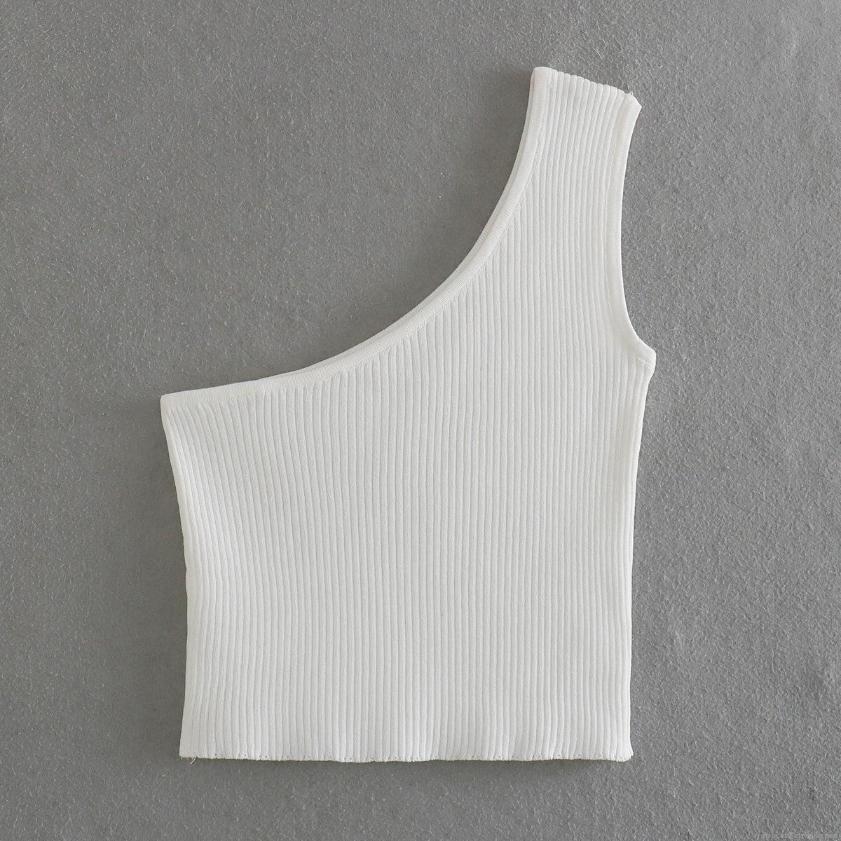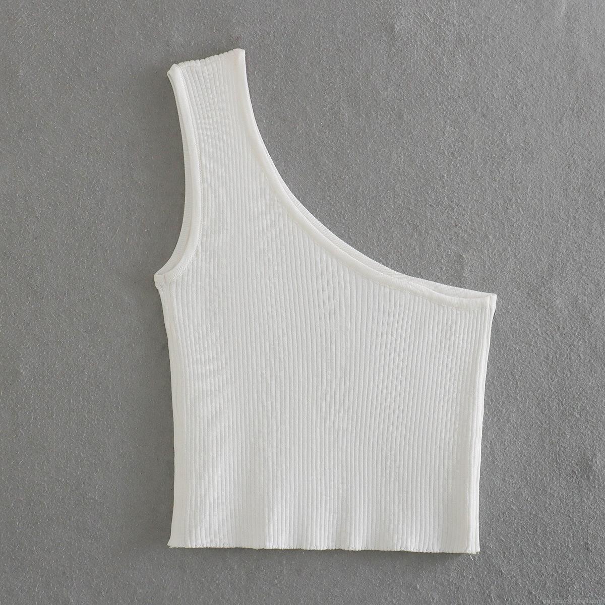• Sexy One Shoulder Ribbed Knit Tank Top Women Solid Color Slim Fit Sleeveless Crop Top Summer Party Clubwear Fashion Polyester Asymmetric Neckline Vest