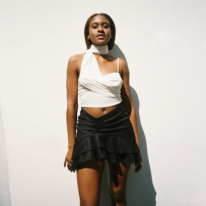 • Sexy One Shoulder Tie Up Crop Top For Women Asymmetric Halter Strappy Slim Fit Camisole Summer Streetwear Chic Solid Bandeau Top